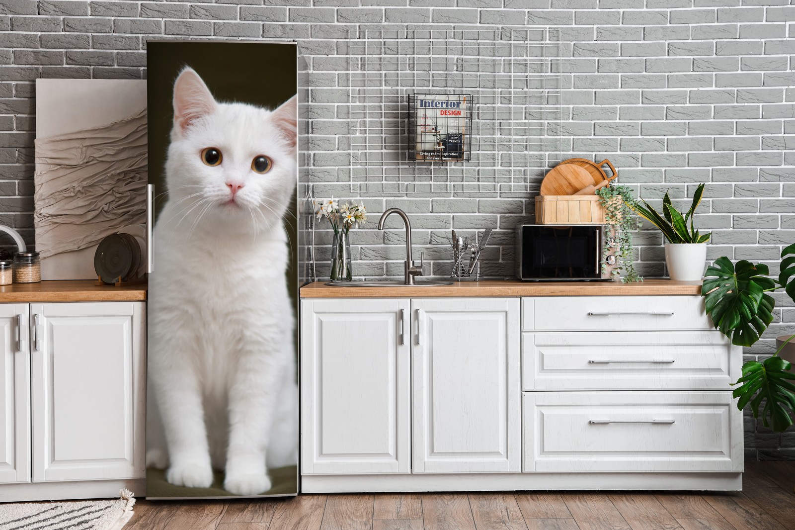 Dodaj ciepła i uroku do wnętrza dzięki temu wyraźnemu portretowi uroczego białego kota, idealnemu do sypialni i salonu.