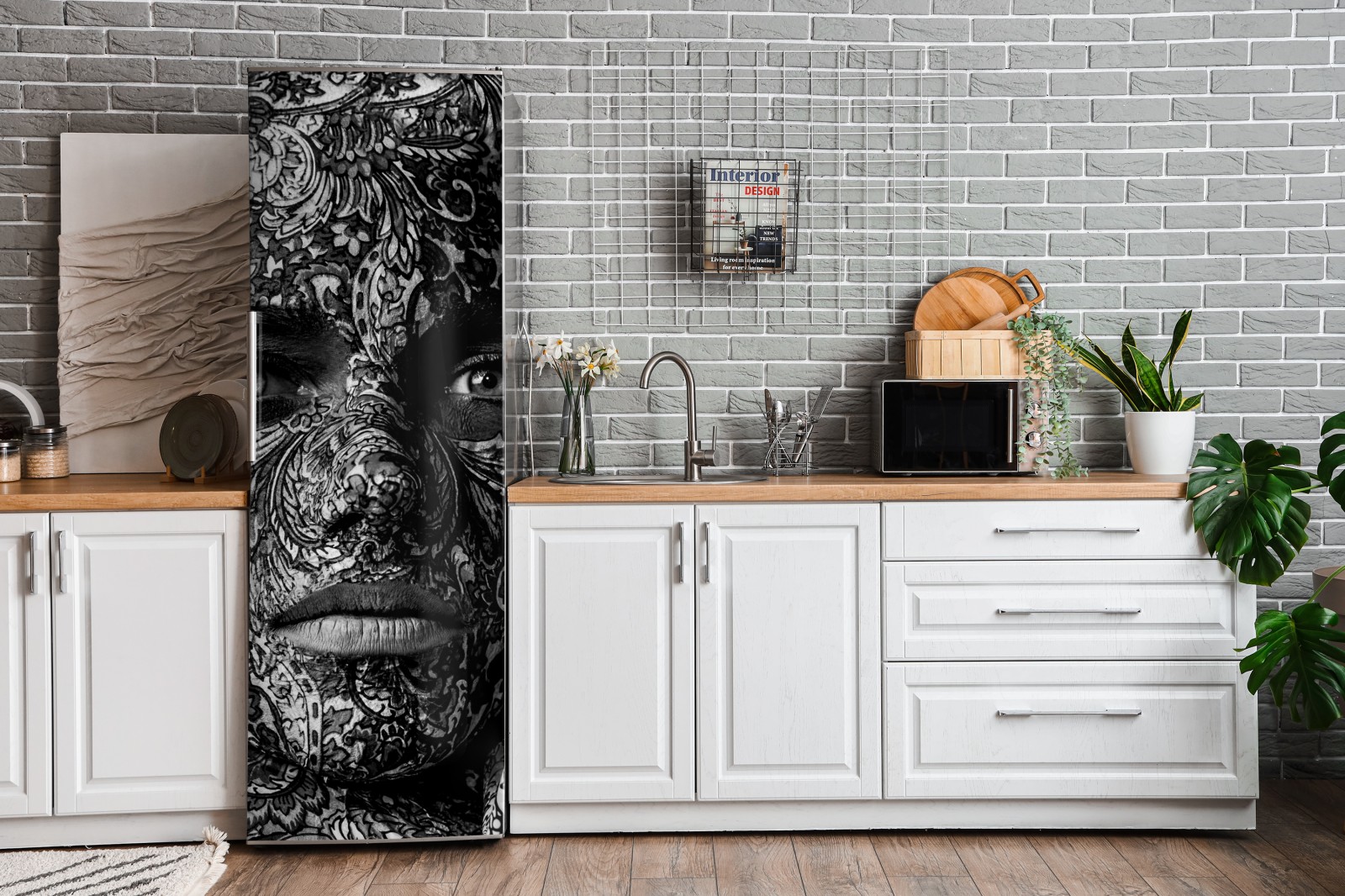 Naklejka na lodówkę Ornamentalny portret z kwiatowymi wzorami
