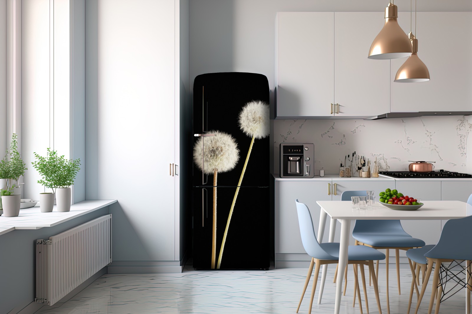 Naklejka na lodówkę Delikatne dmuchawce na czarnym tle