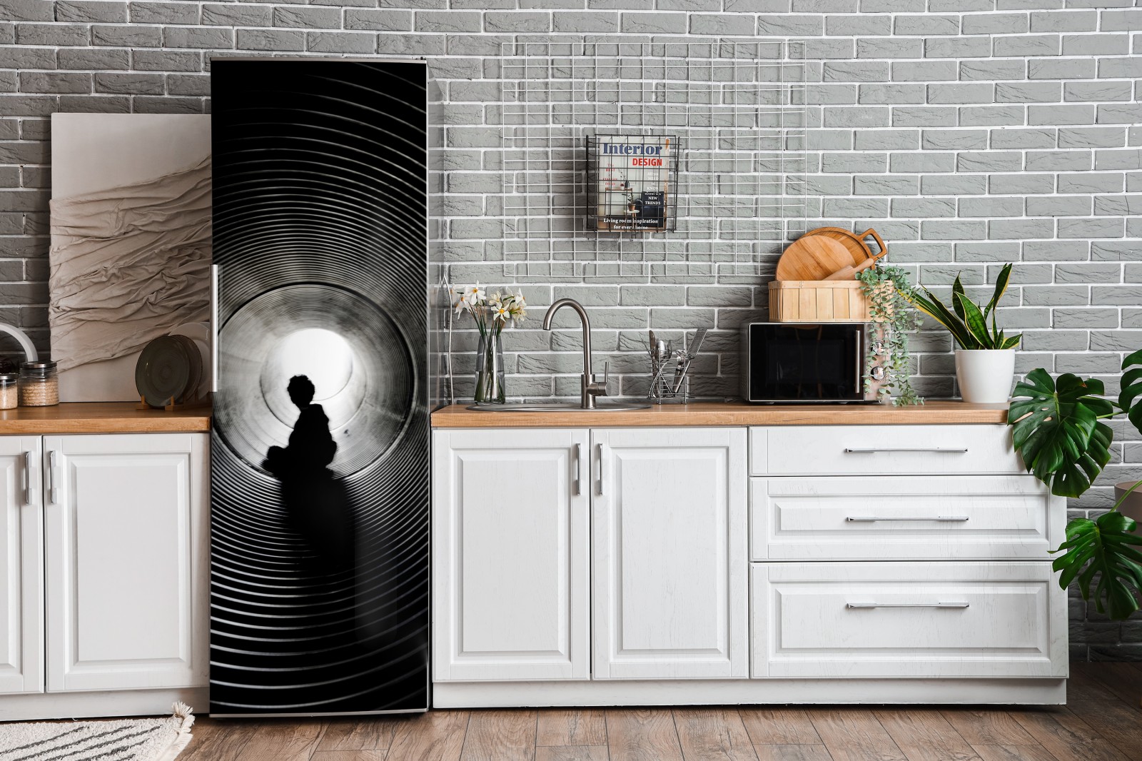 Naklejka na lodówkę Sylwetka w spiralnym tunelu
