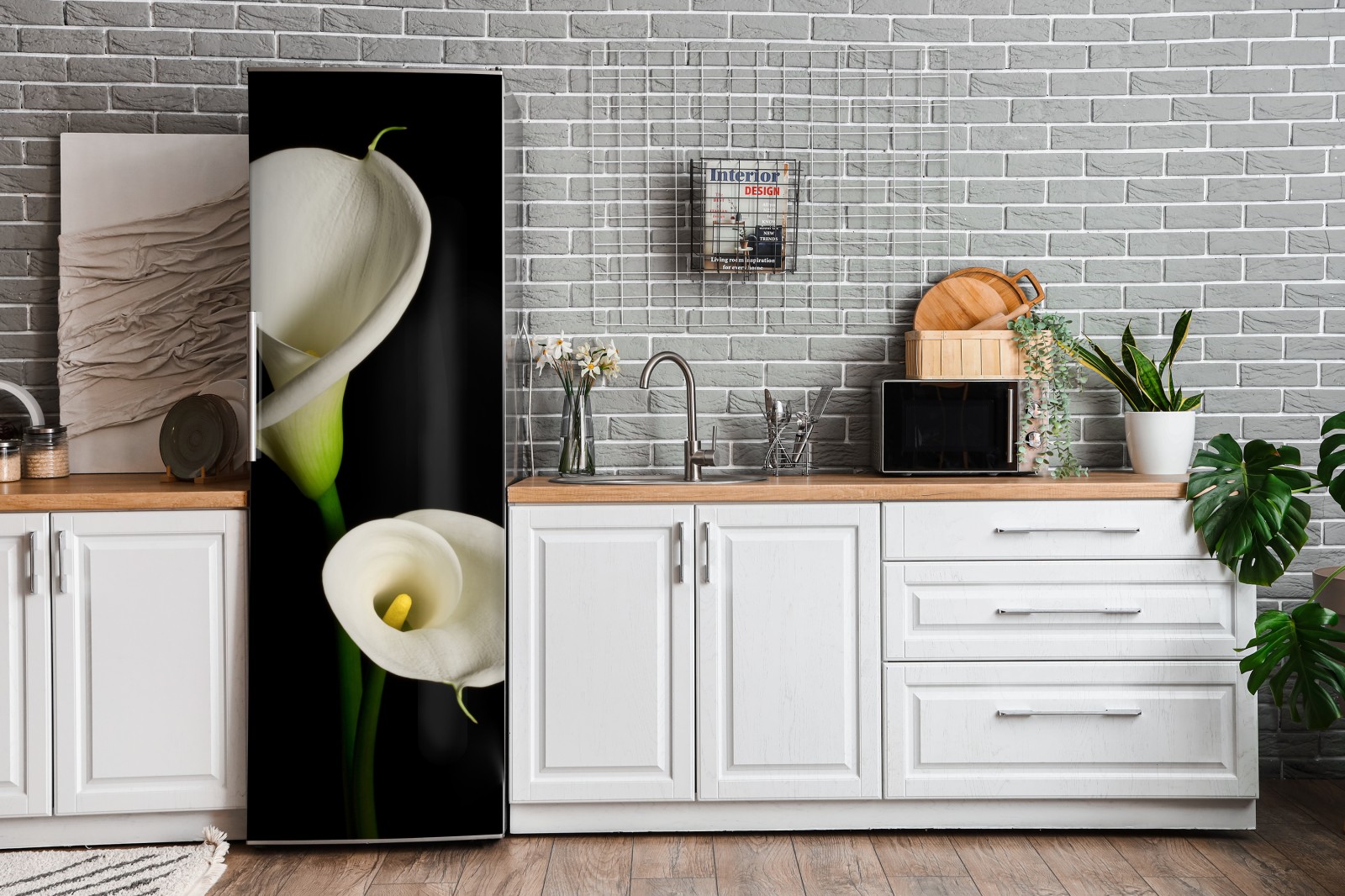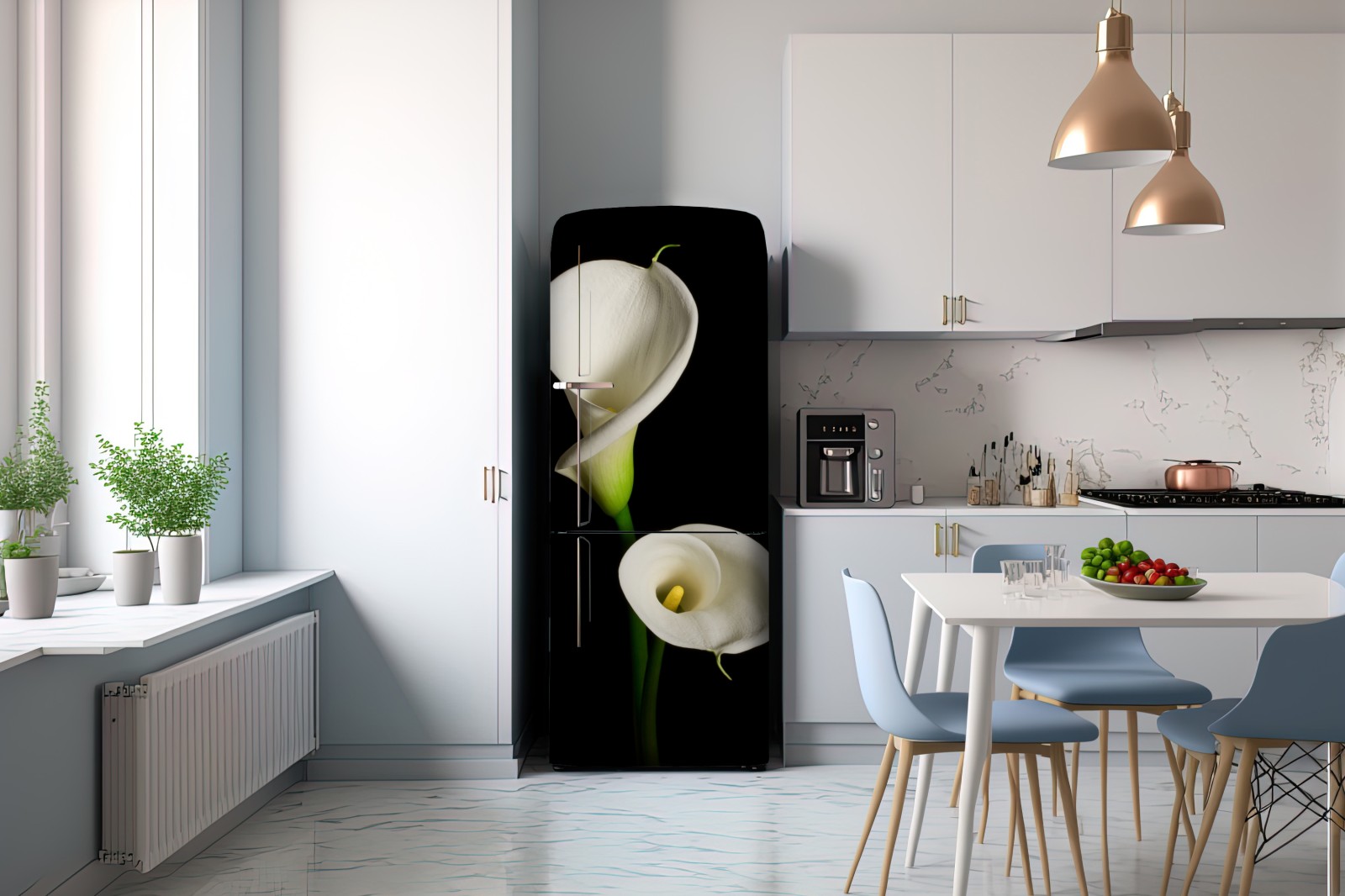 Naklejka na lodówkę Białe kalie na czarnym tle