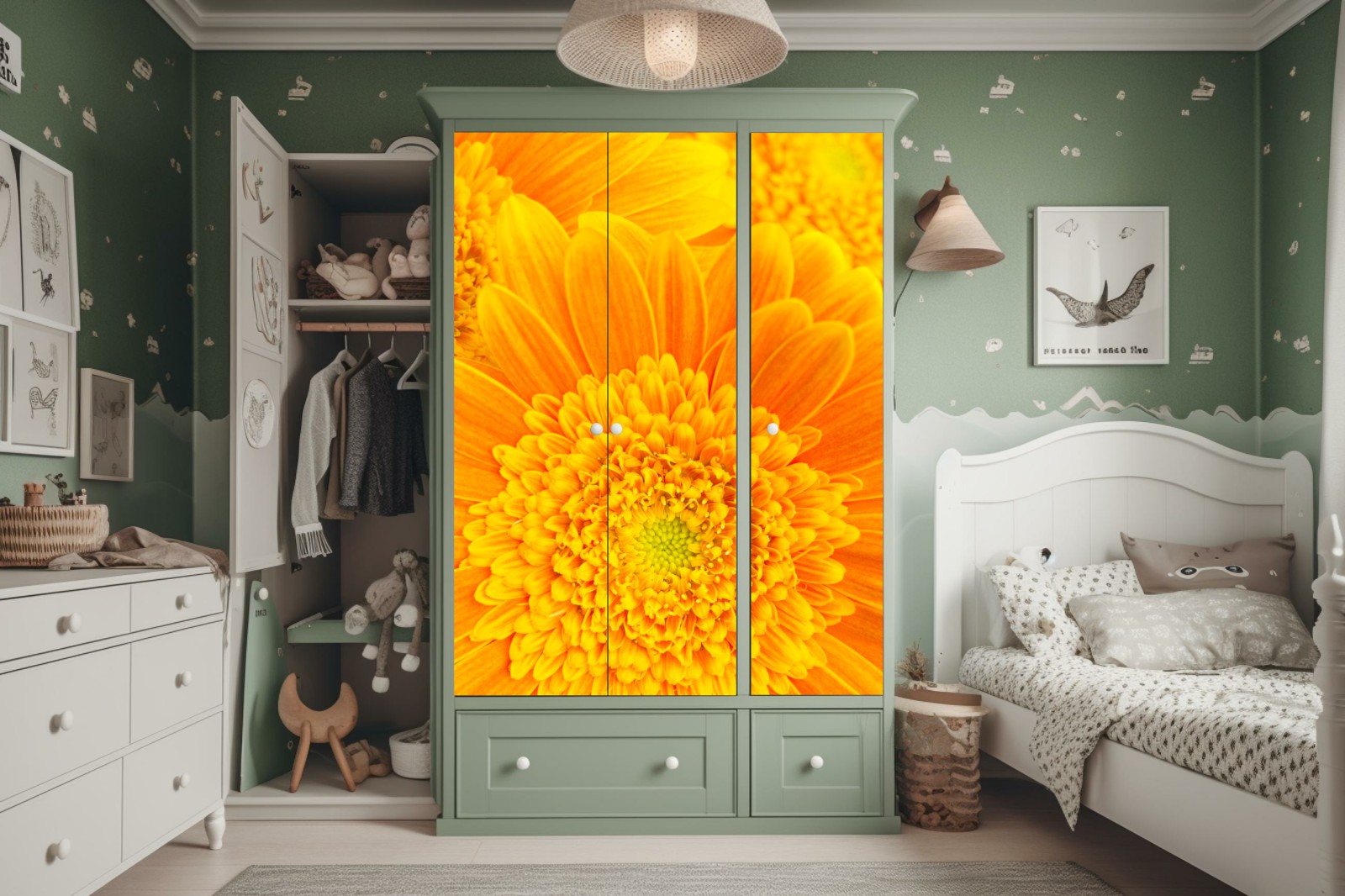 Naklejka na szafę Intensywny pomarańczowy kwiat gerbery z bliska