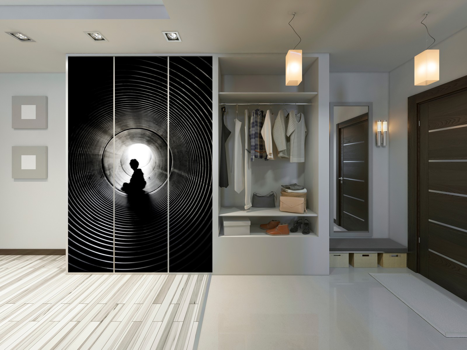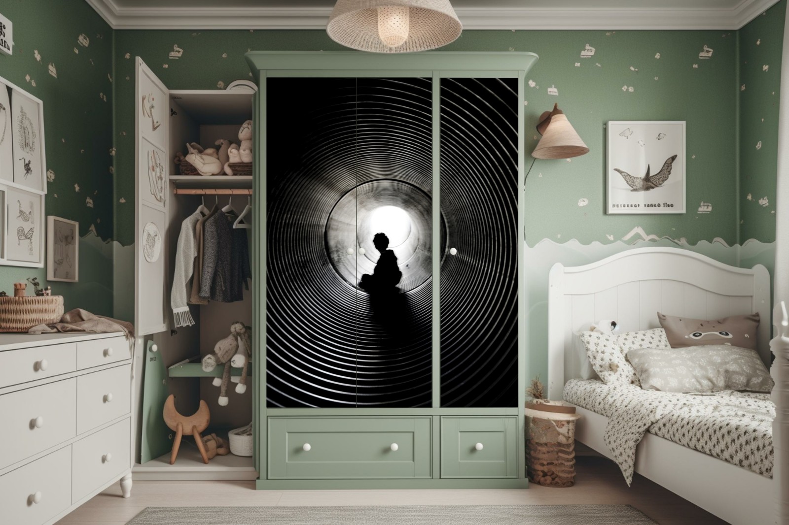 Naklejka na szafę Sylwetka w spiralnym tunelu