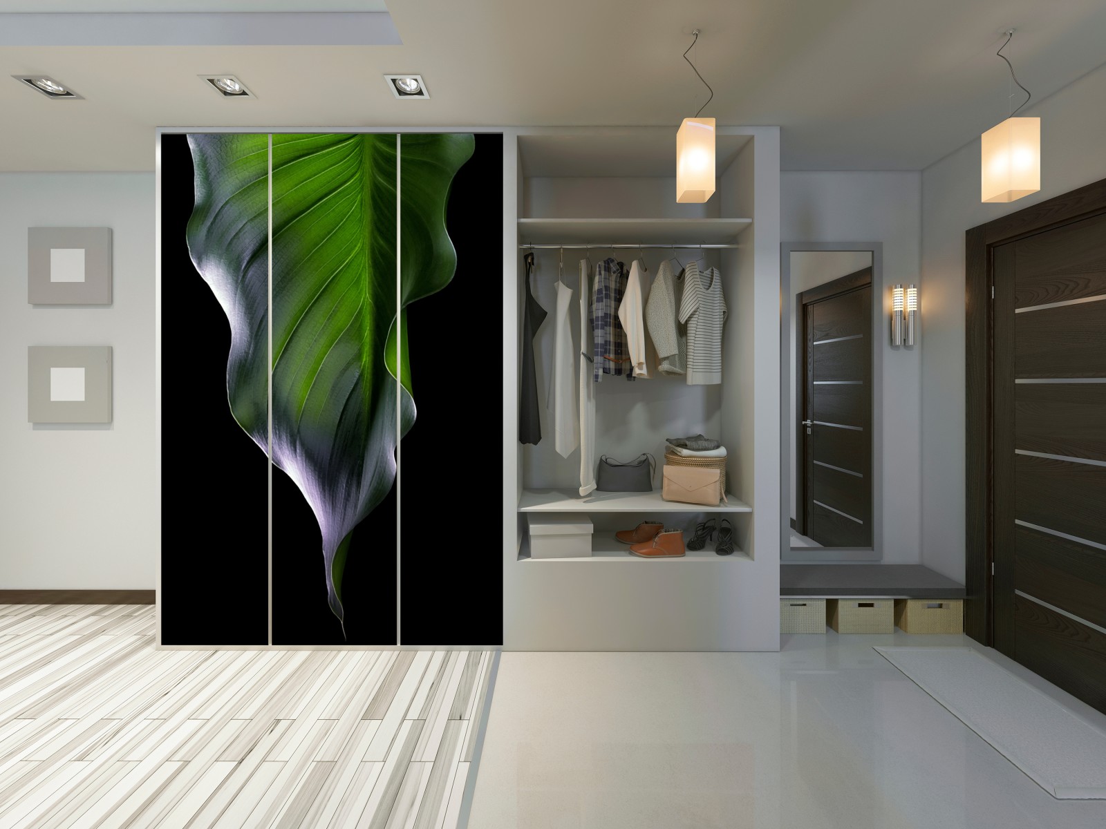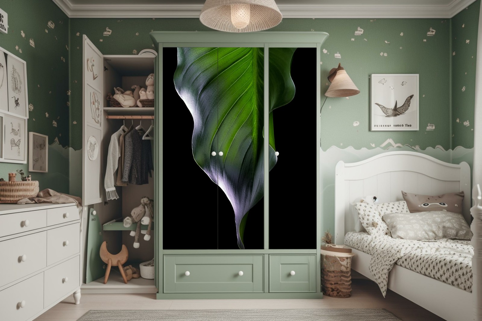 Naklejka na szafę Elegancki zielony liść na czarnym tle
