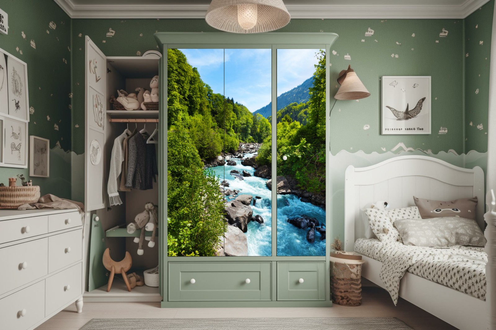 Naklejka na szafę Górska rzeka w bujnej zieleni