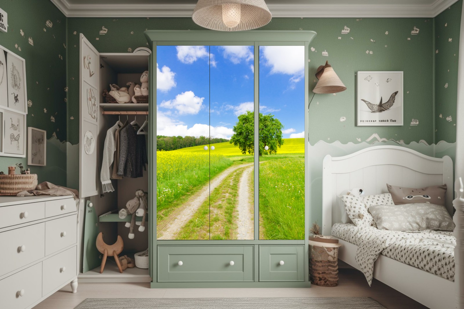 Naklejka na szafę Słoneczna wiejska ścieżka z samotnym drzewem