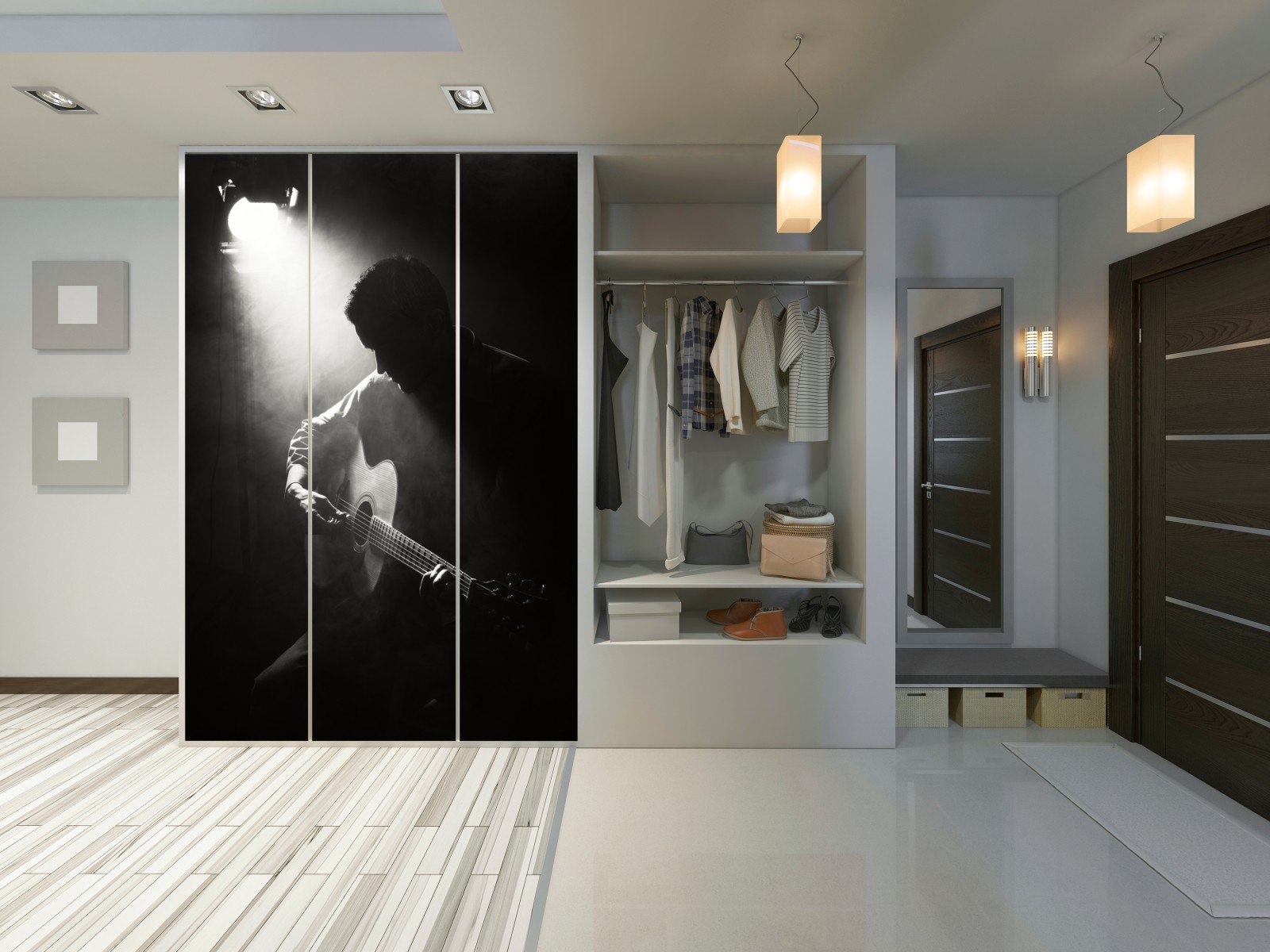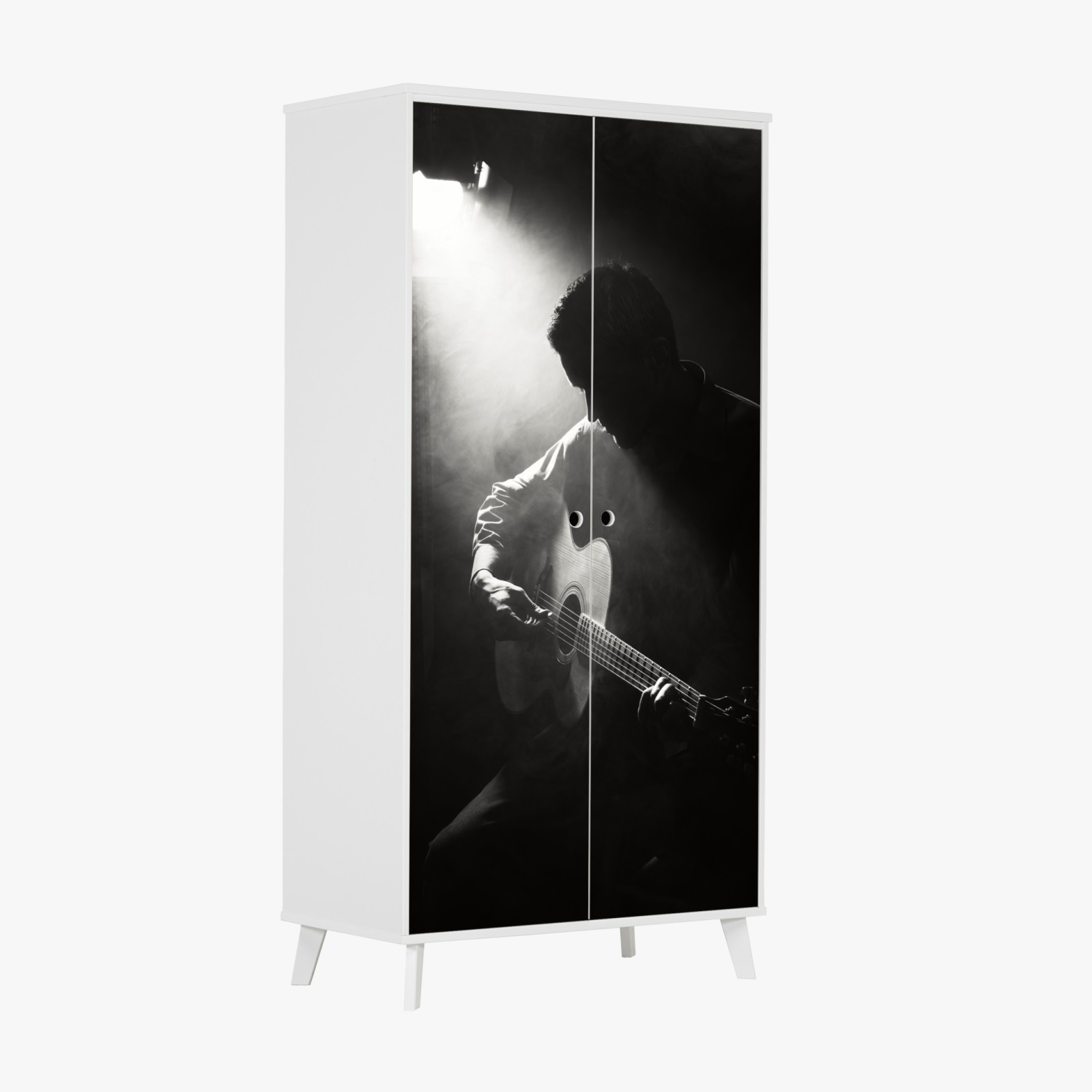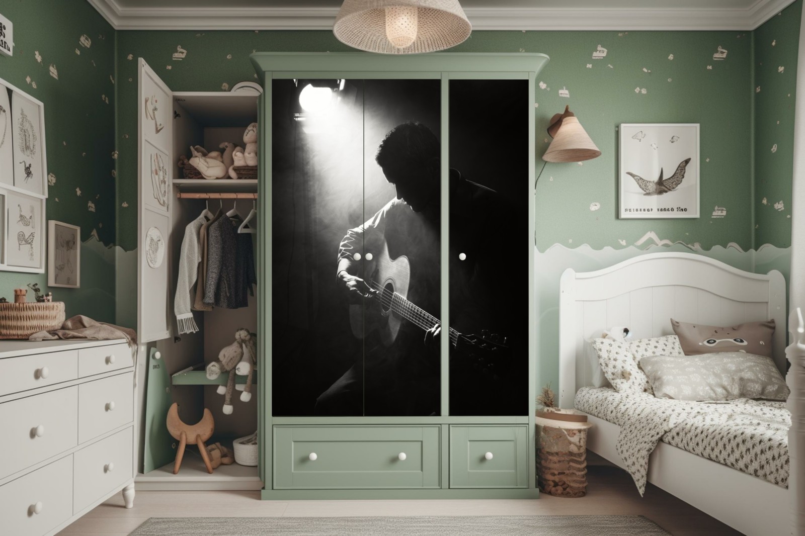 Naklejka na szafę Sylwetka gitarzysty w świetle reflektora