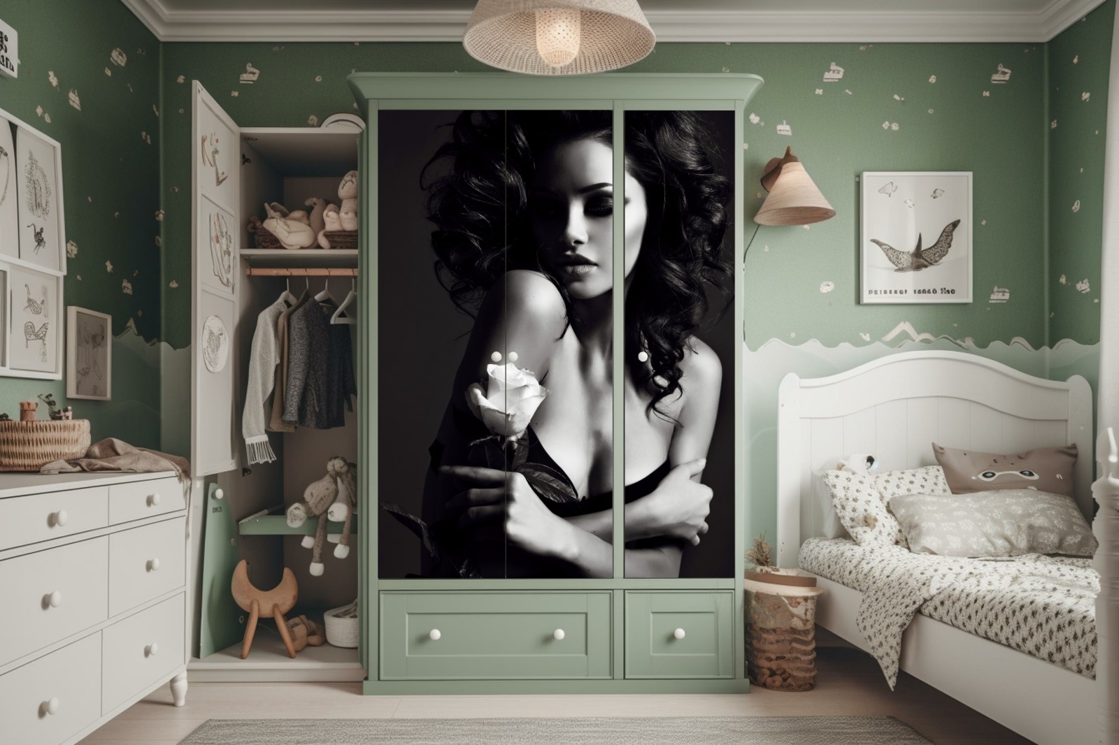 Naklejka na szafę Zmysłowy czarno-biały portret z różą