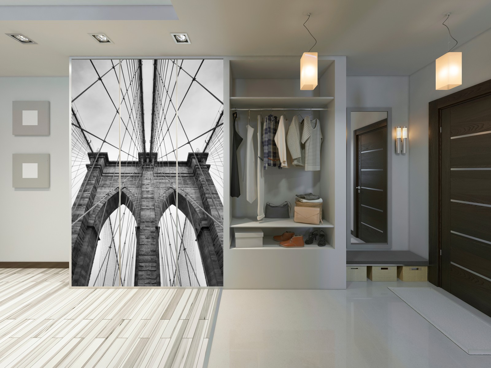 Naklejka na szafę Perspektywa Mostu Brooklyńskiego w monochromie