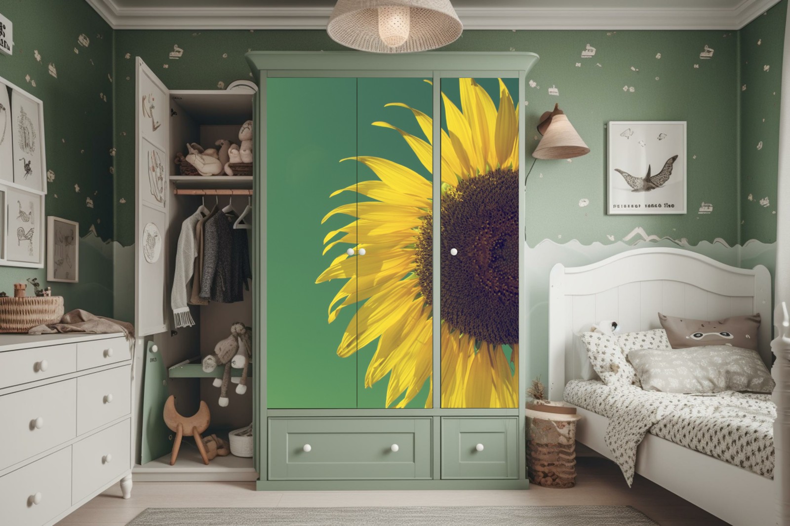 Naklejka na szafę Promienny słonecznik na retro niebie