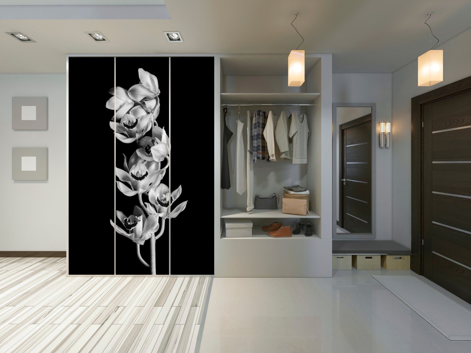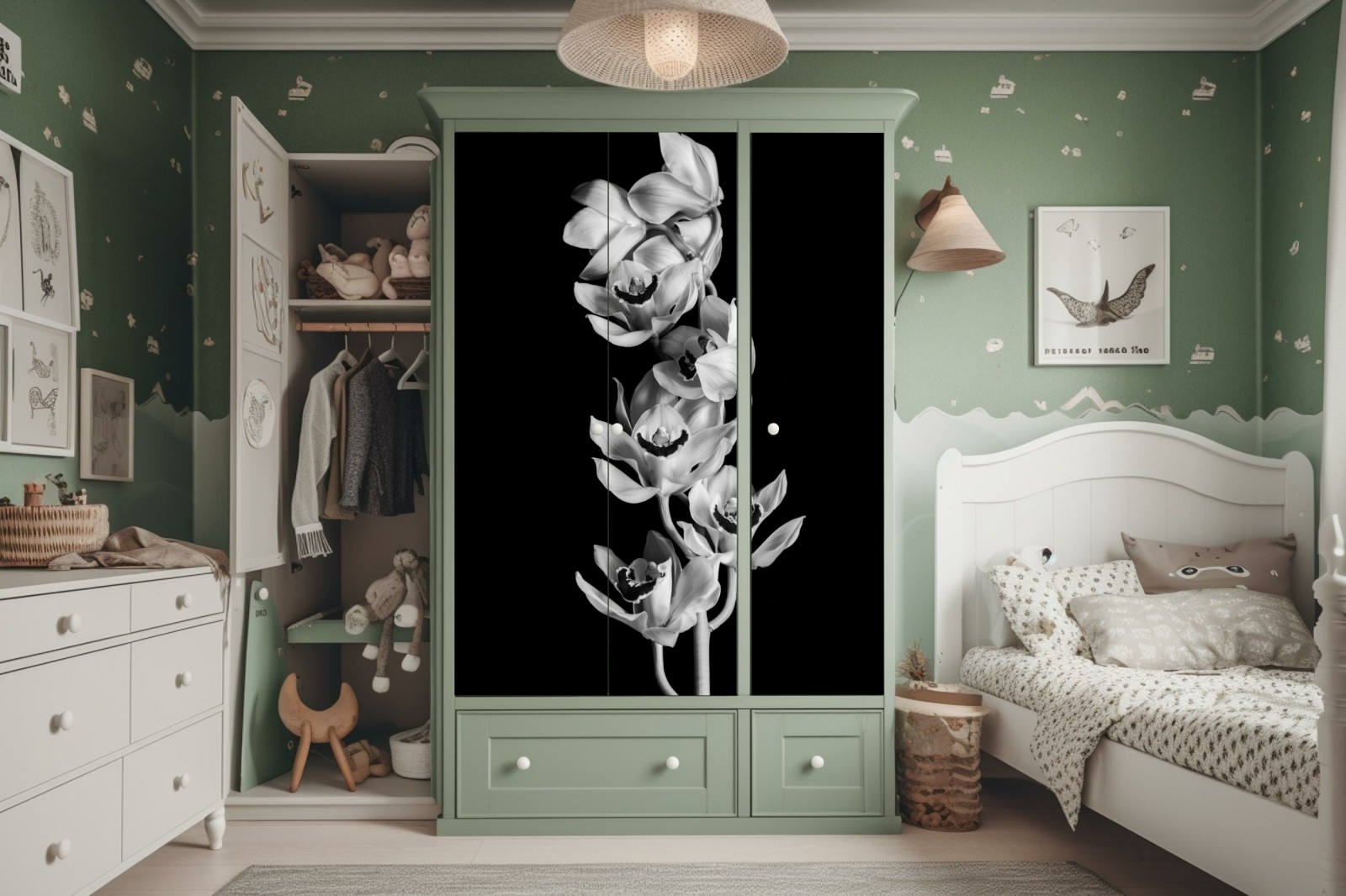 Naklejka na szafę Elegancka monochromatyczna gałąź orchidei