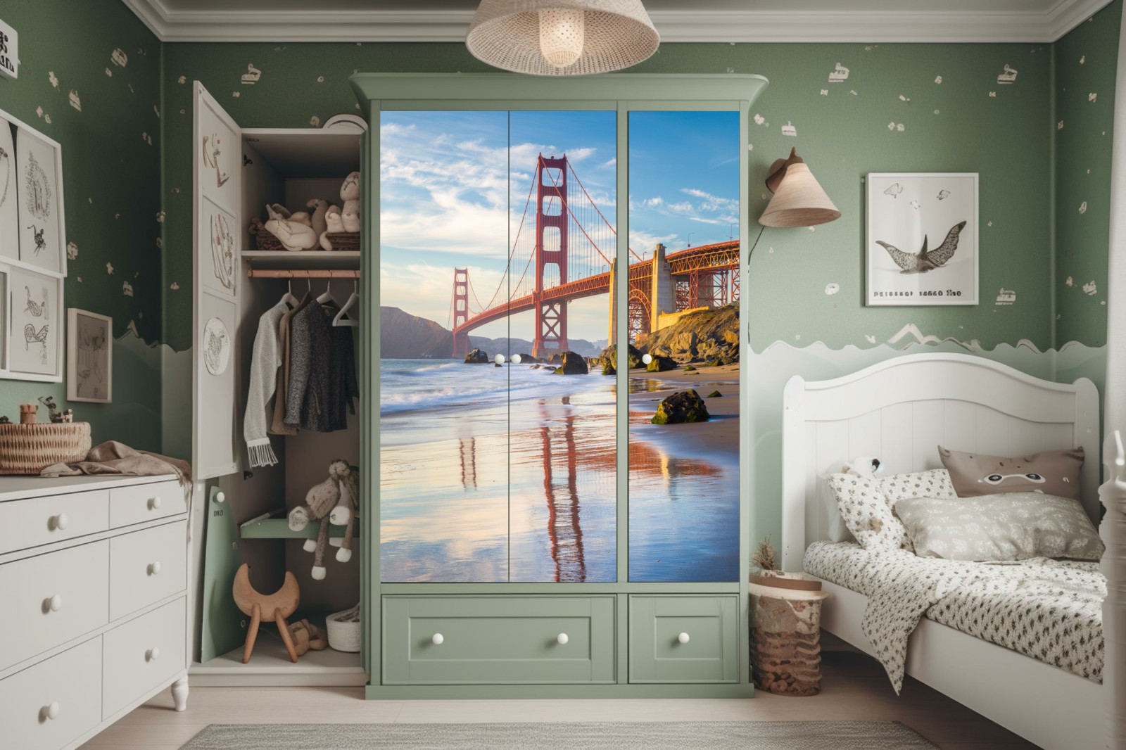 Naklejka na szafę Most Golden Gate odbicie na brzegu