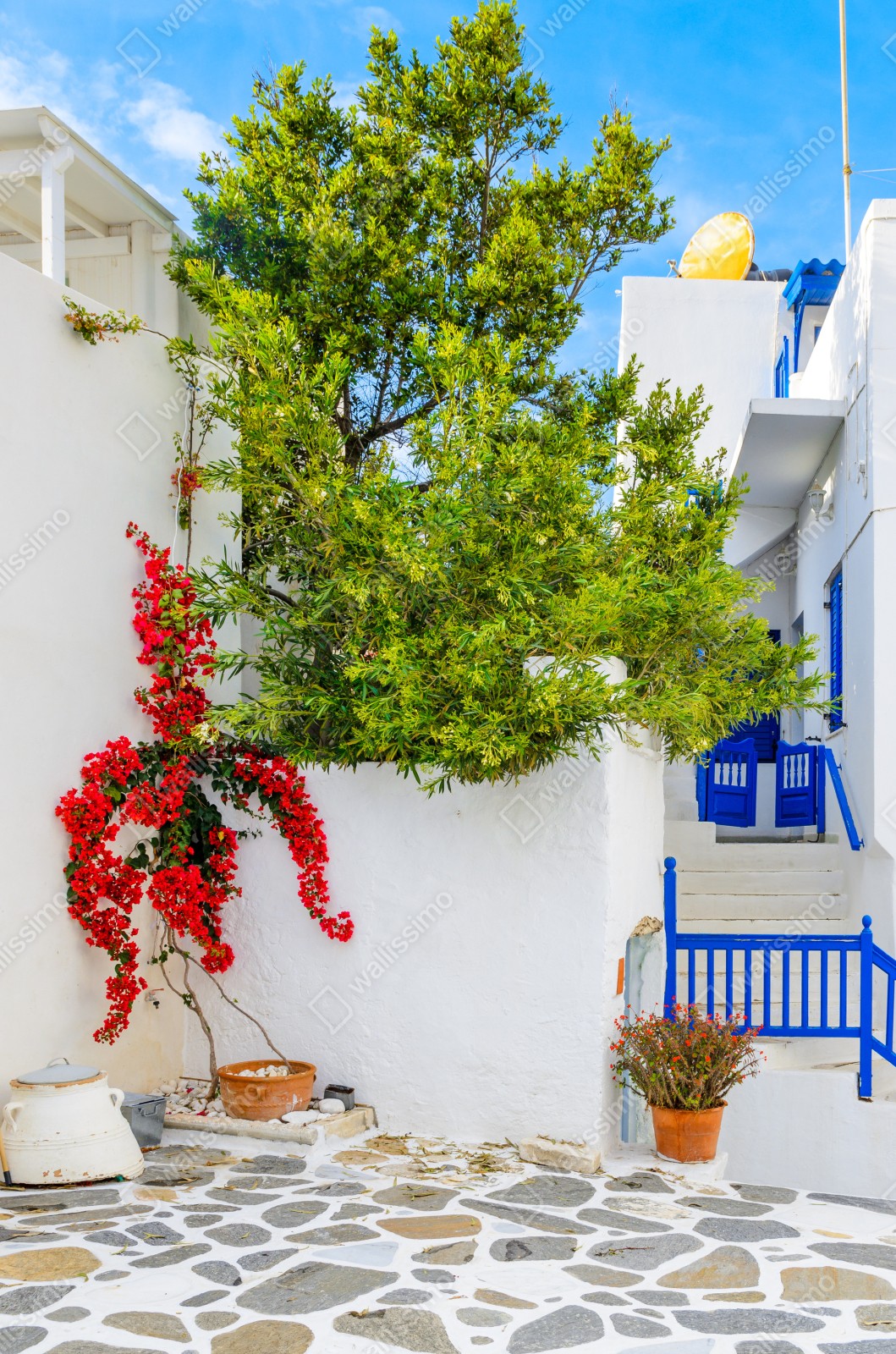 Naklejka na szafę Słoneczny dziedziniec śródziemnomorski z bugenwillą