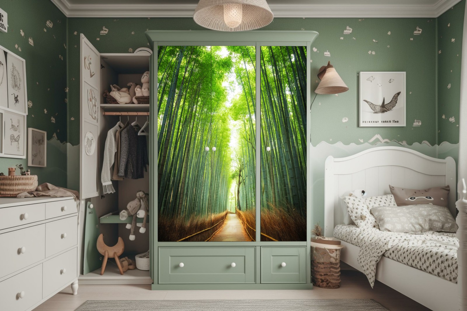 Naklejka na szafę Ścieżka przez gaj bambusowy w Arashiyama