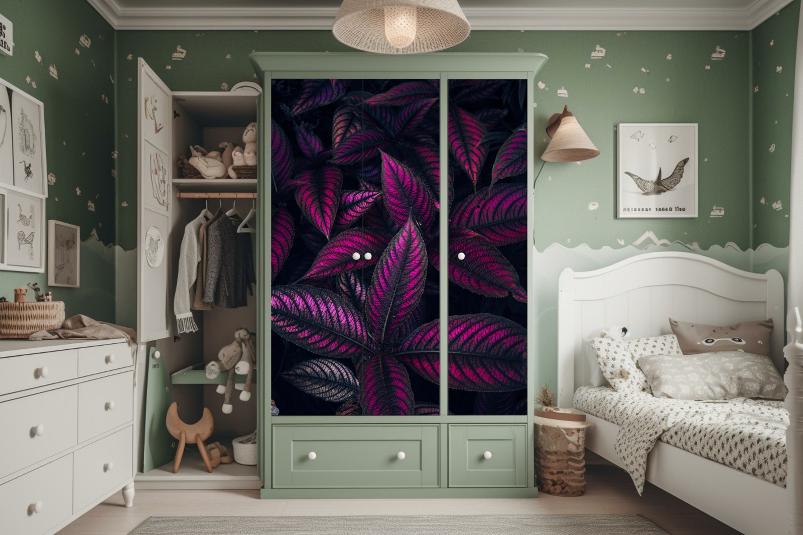Naklejka na szafę Intensywny fioletowy wzór liści