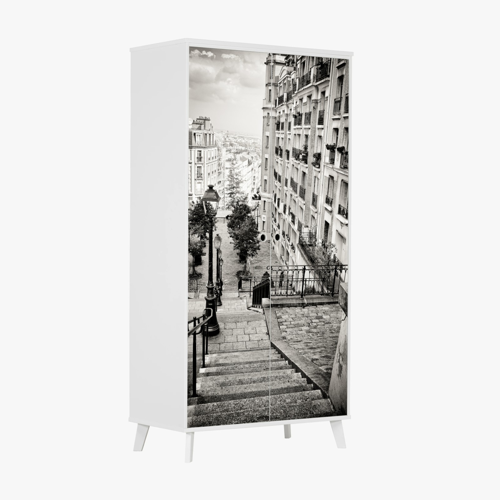 Naklejka na szafę Paryskie schody w monochromie