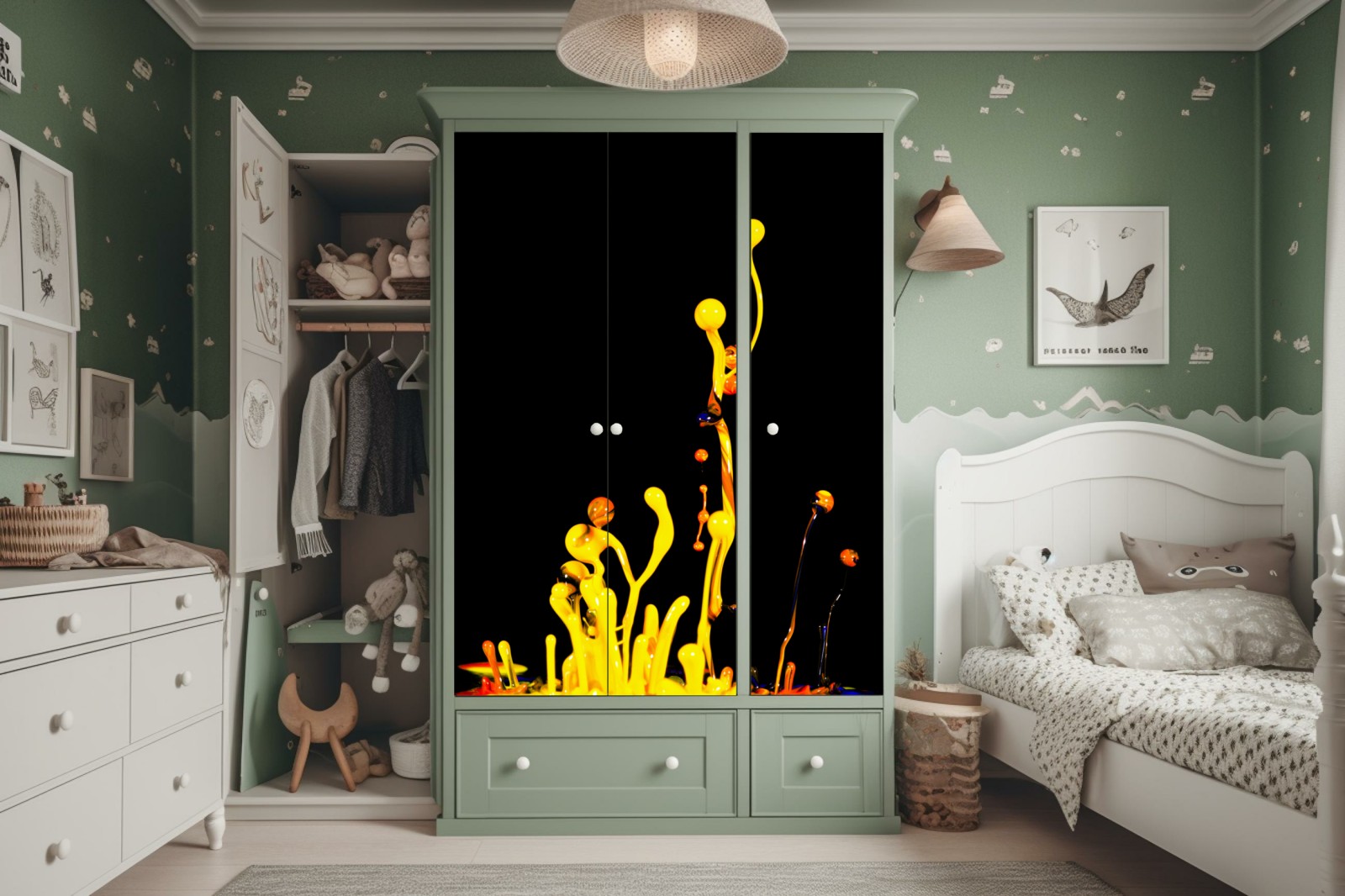 Naklejka na szafę Intensywny żółty rozbryzg farby na czarnym tle