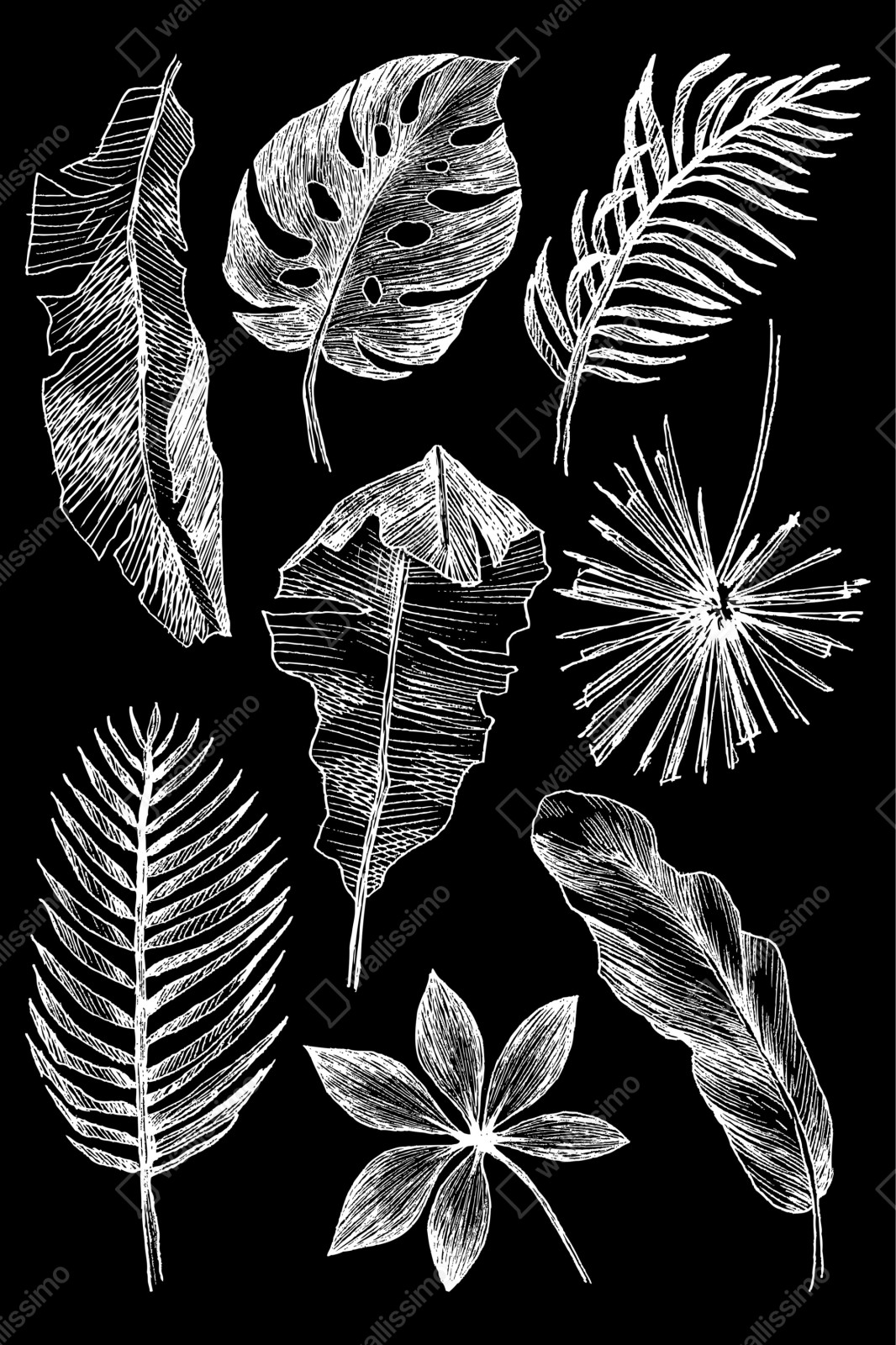 Naklejka na szafę Monochromatyczna kompozycja liści