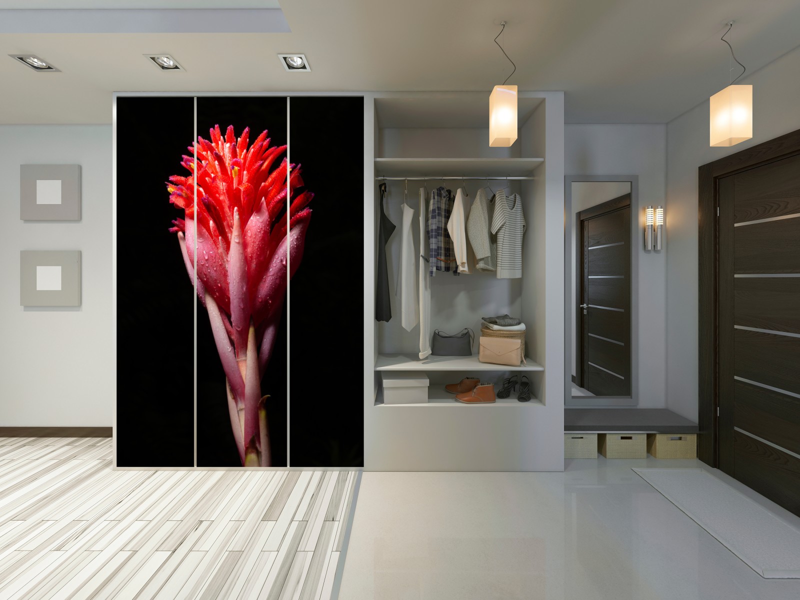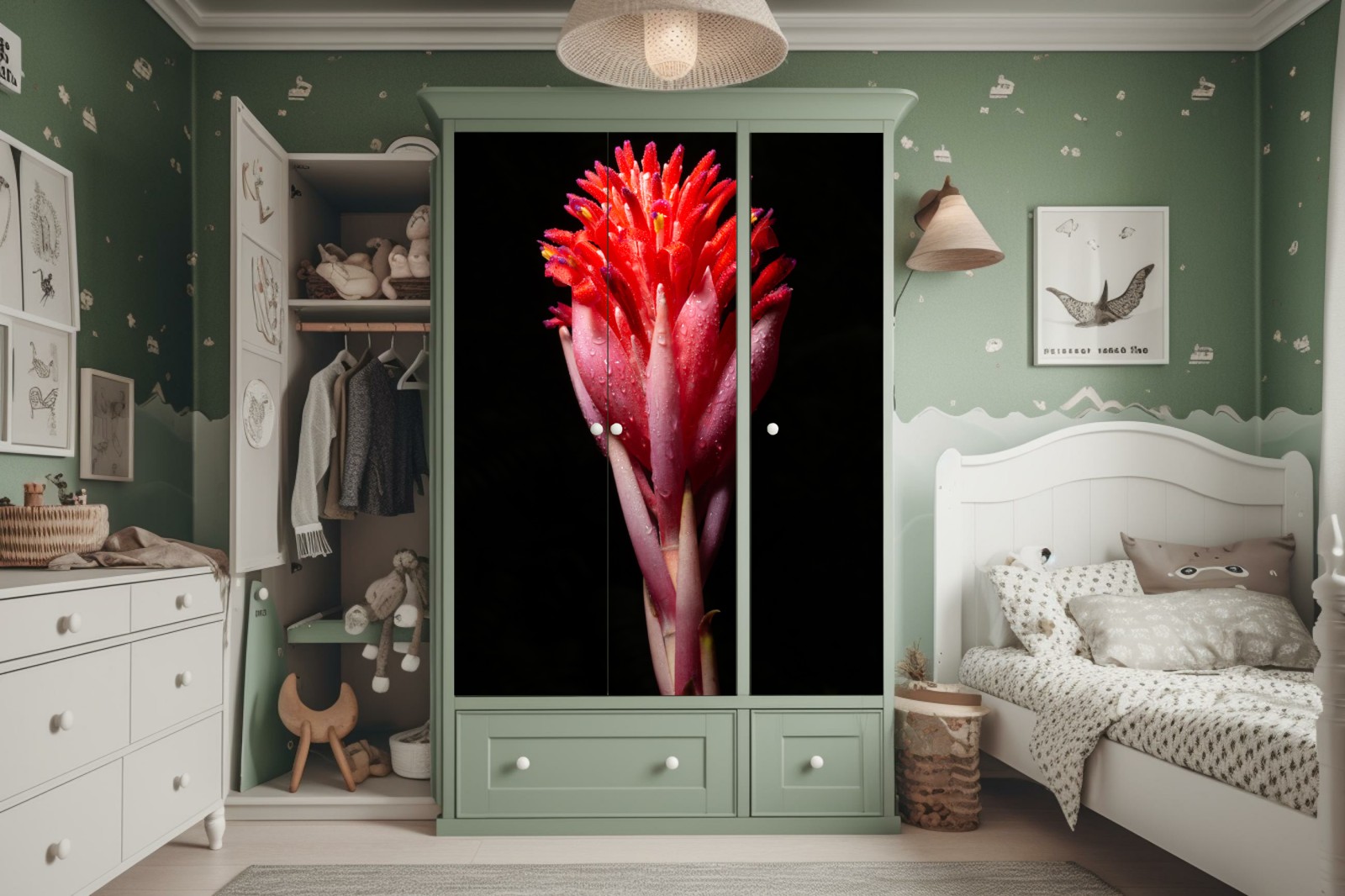 Naklejka na szafę Intensywny różowy kwiat na czarnym tle