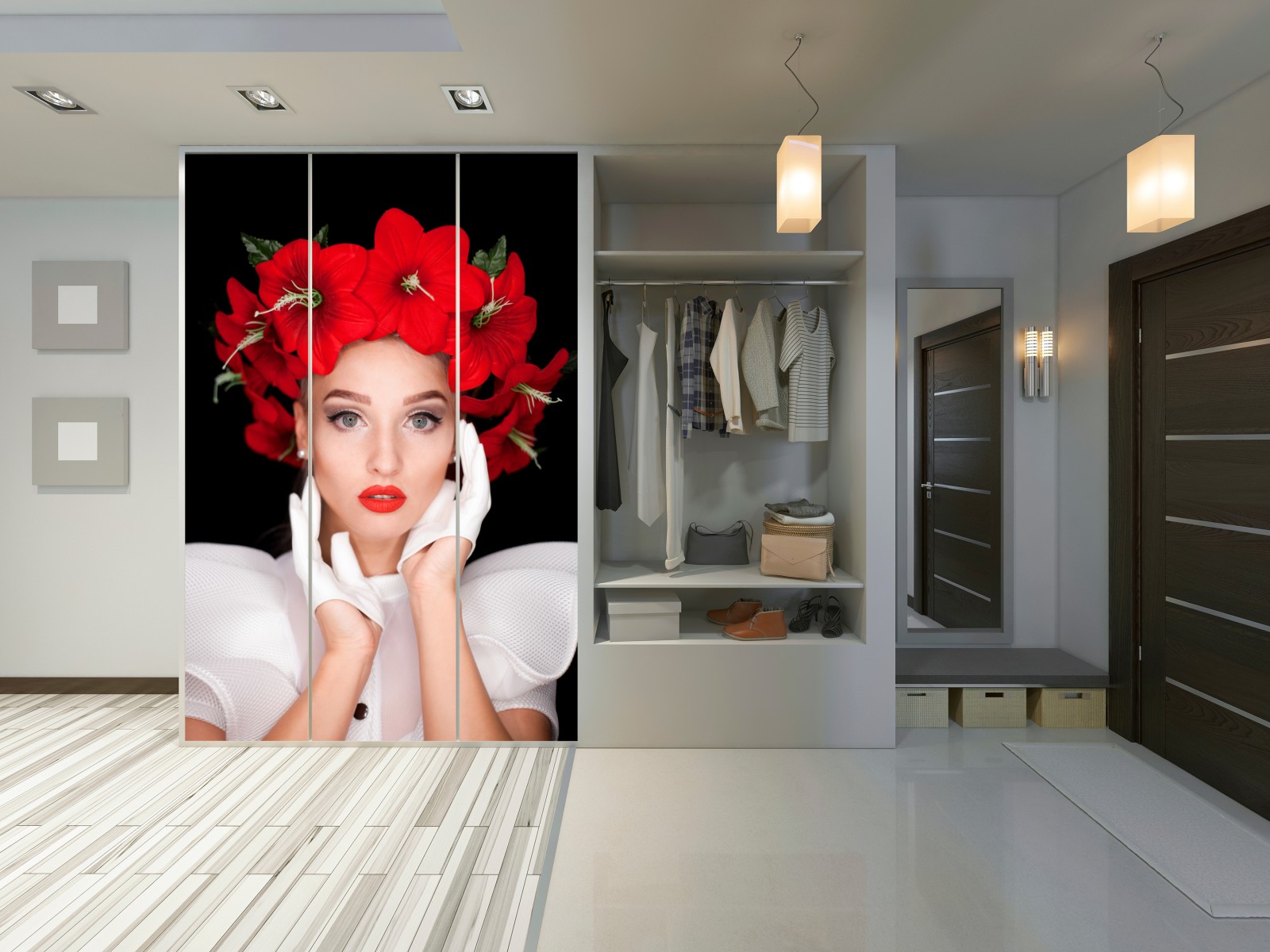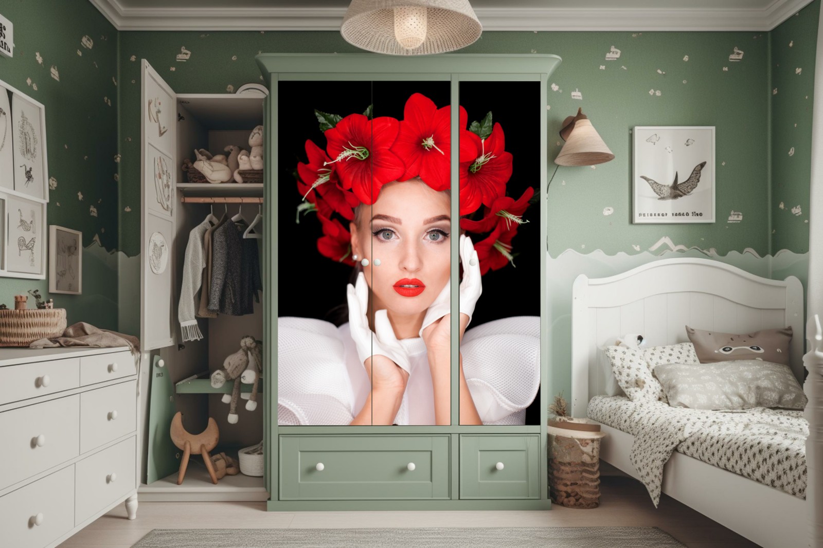 Naklejka na szafę Elegancki portret z wiankiem z czerwonych kwiatów
