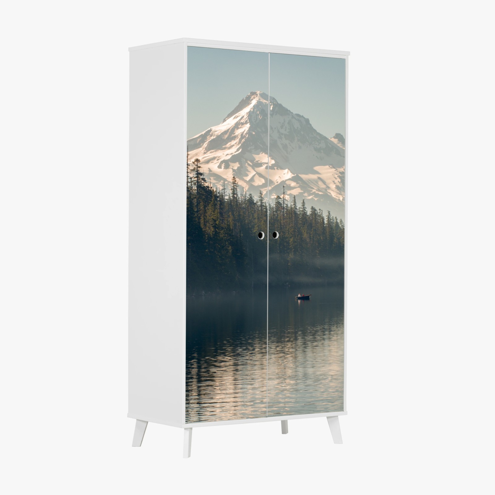 Naklejka na szafę Śnieżna góra nad spokojnym jeziorem