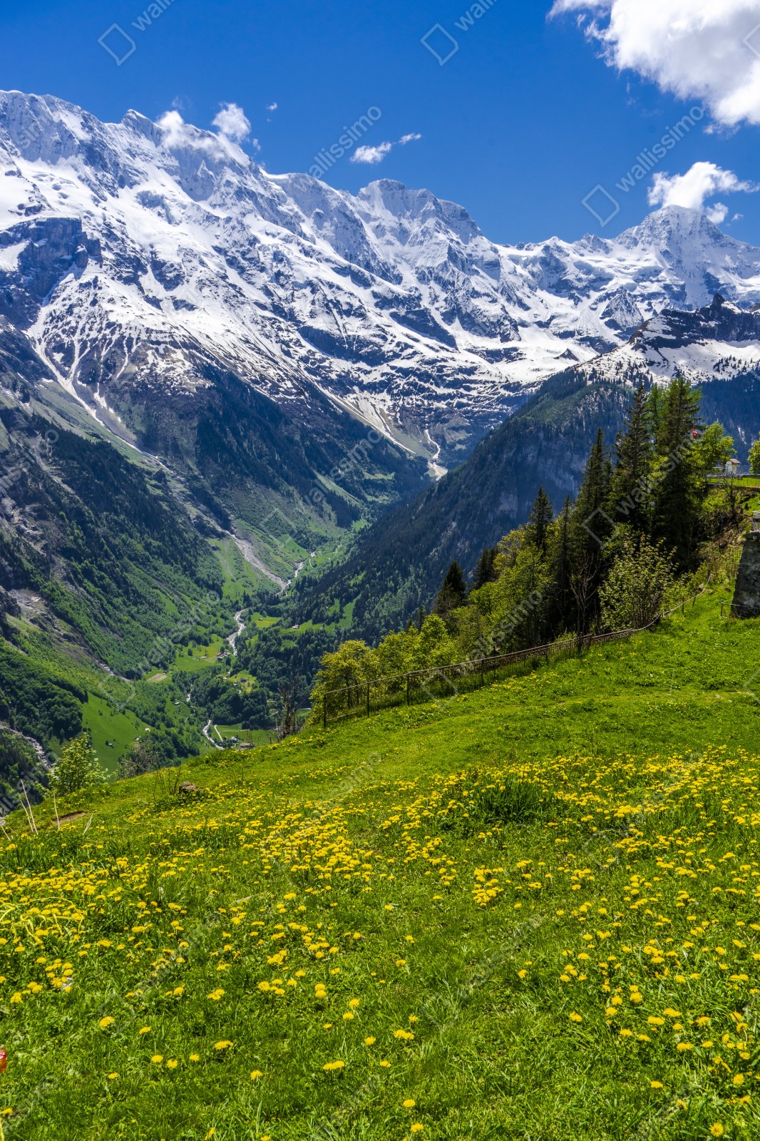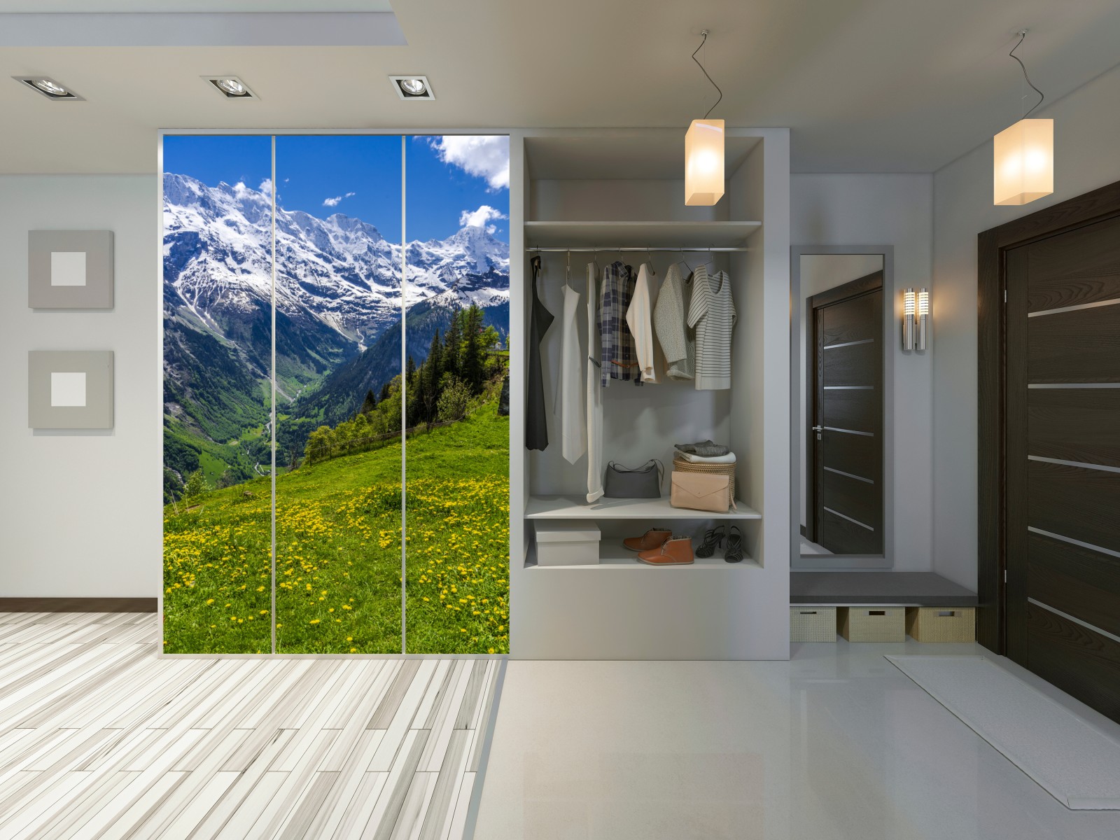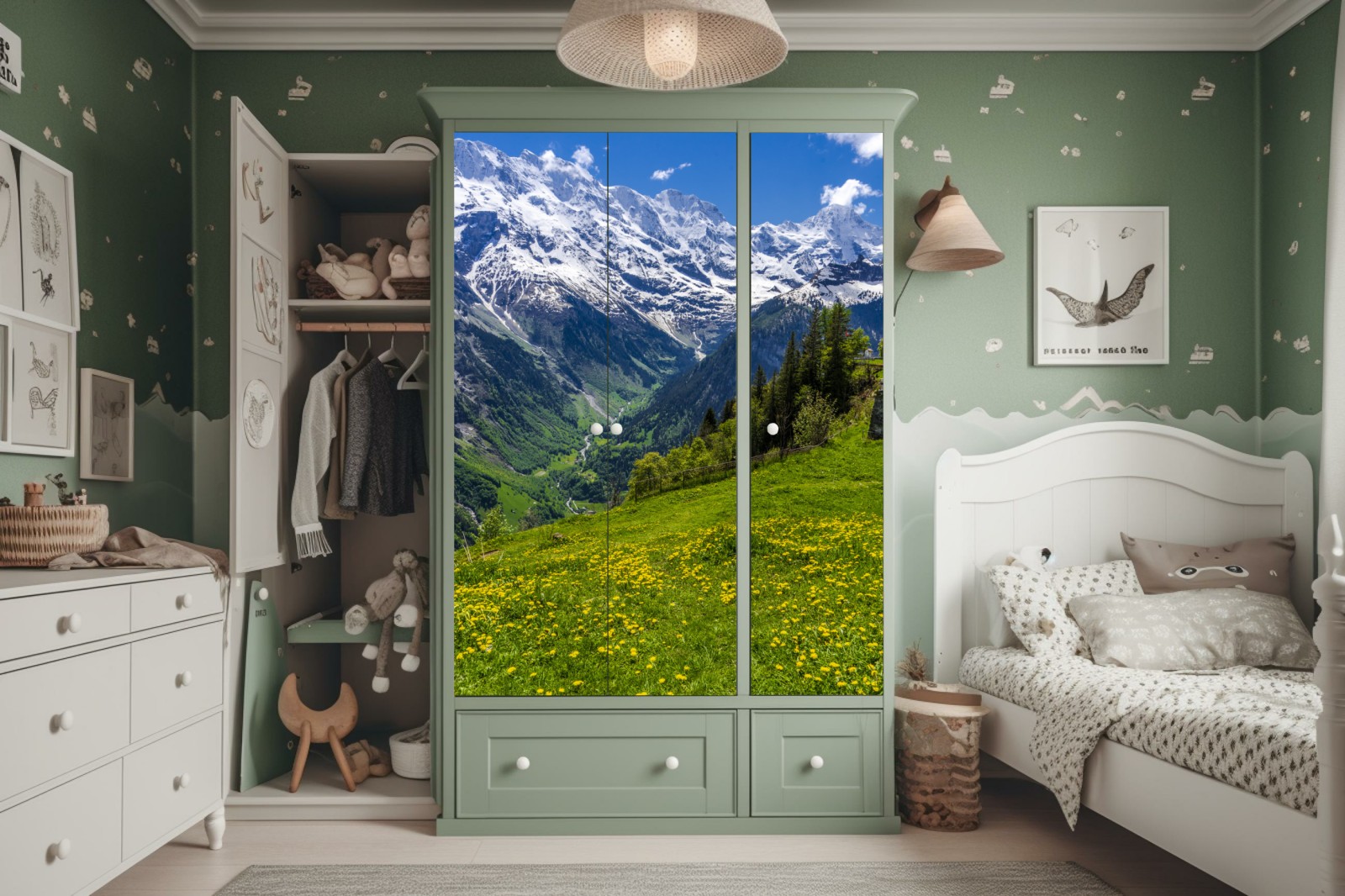 Naklejka na szafę Alpejska łąka wiosną pod ośnieżonymi szczytami