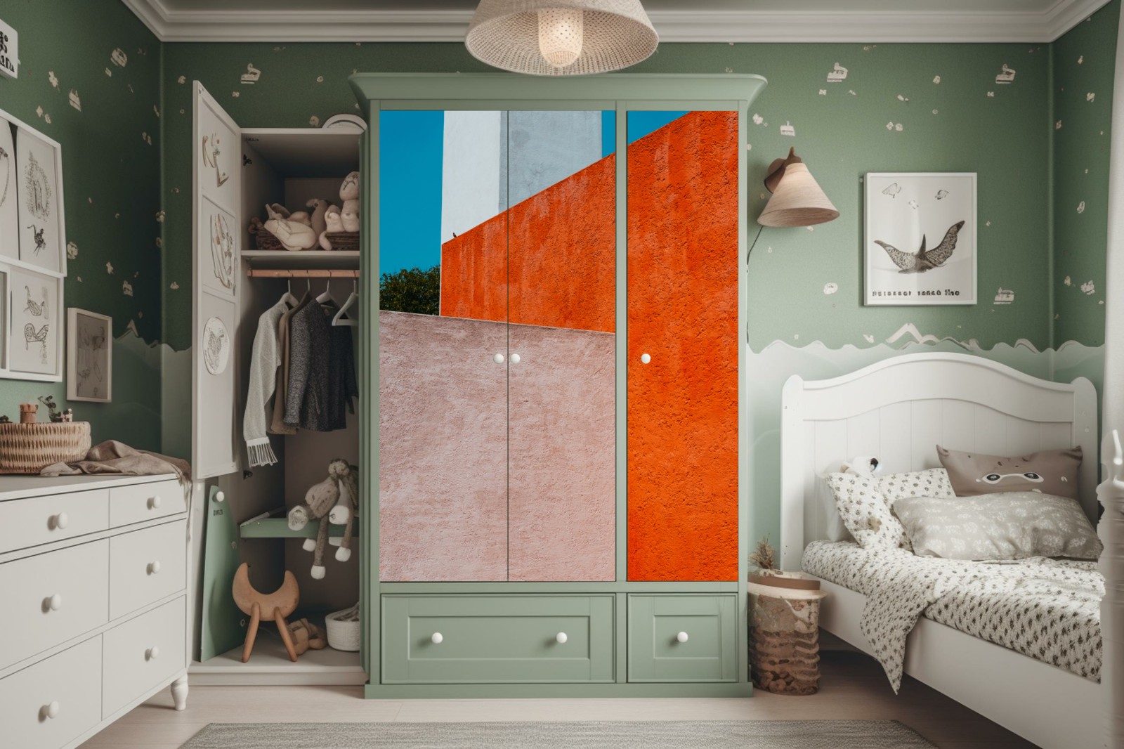 Naklejka na szafę Odważna geometryczna elewacja w pomarańczy i turkusie
