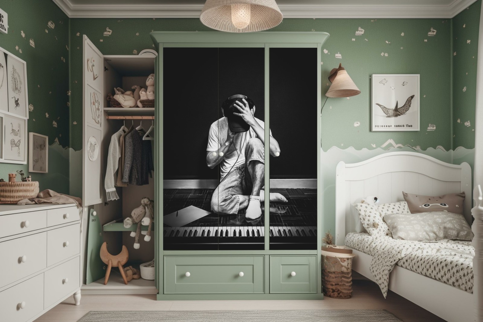 Naklejka na szafę Introwertyczny muzyk przy klawiaturze