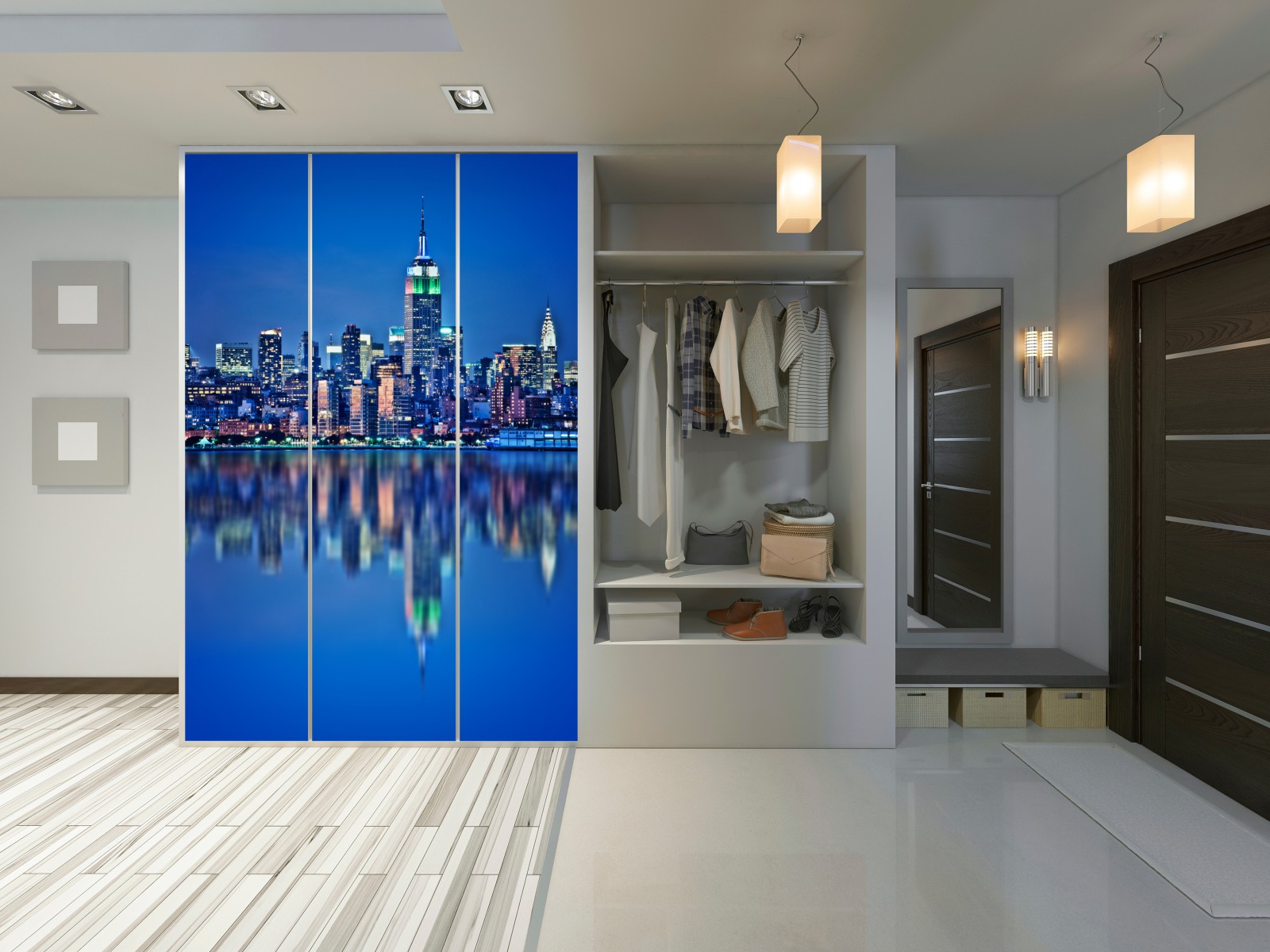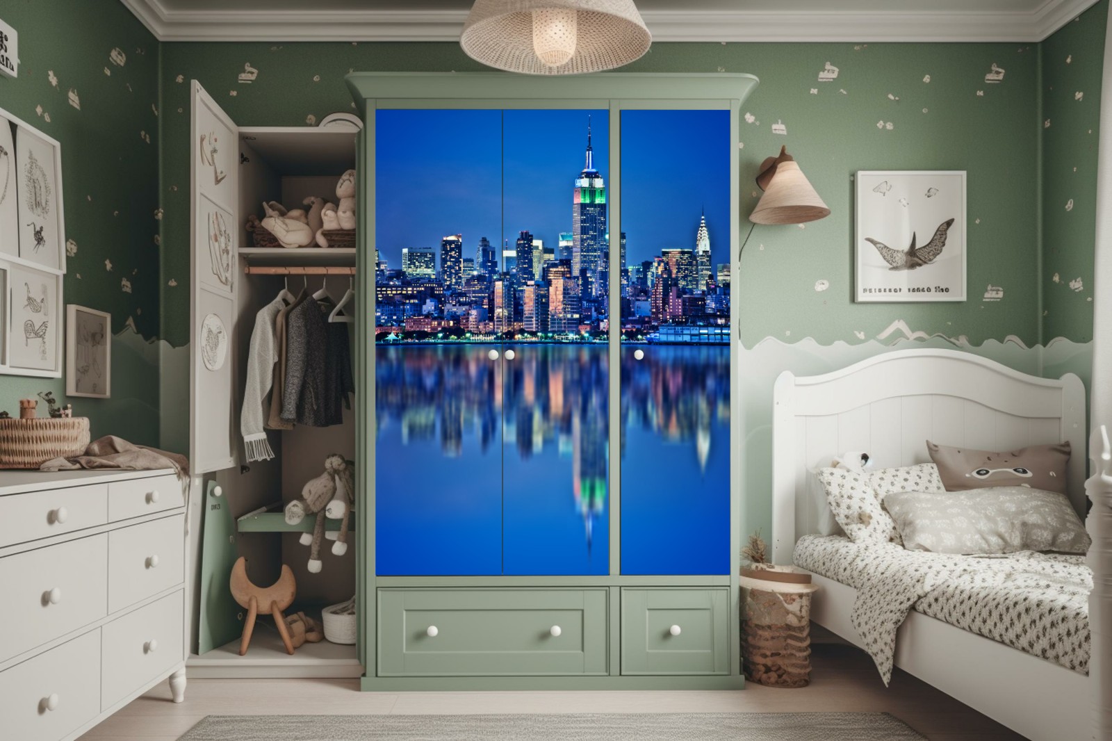 Naklejka na szafę Nowy Jork nocna panorama z odbiciem