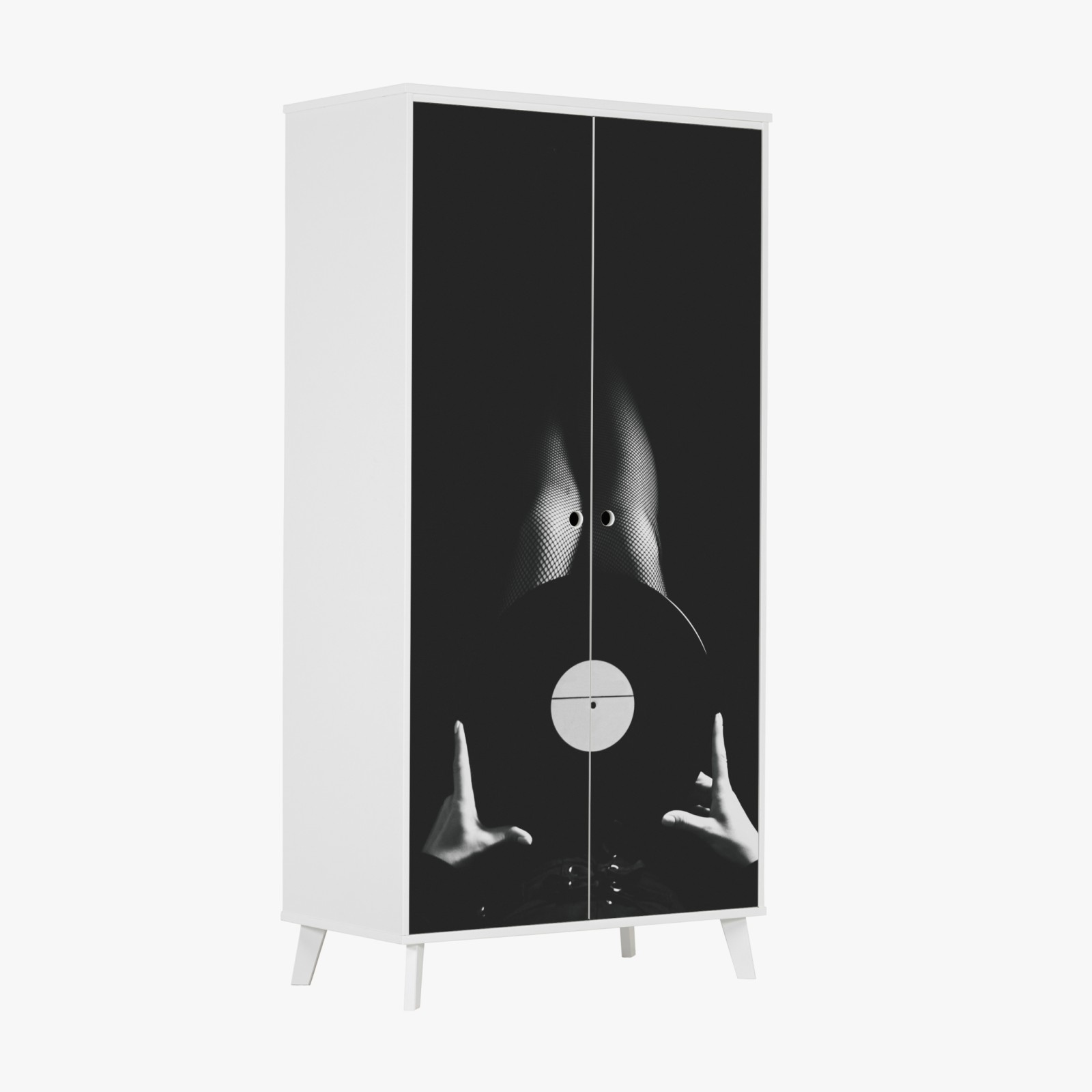 Naklejka na szafę Płyta winylowa i nogi w kabaretkach