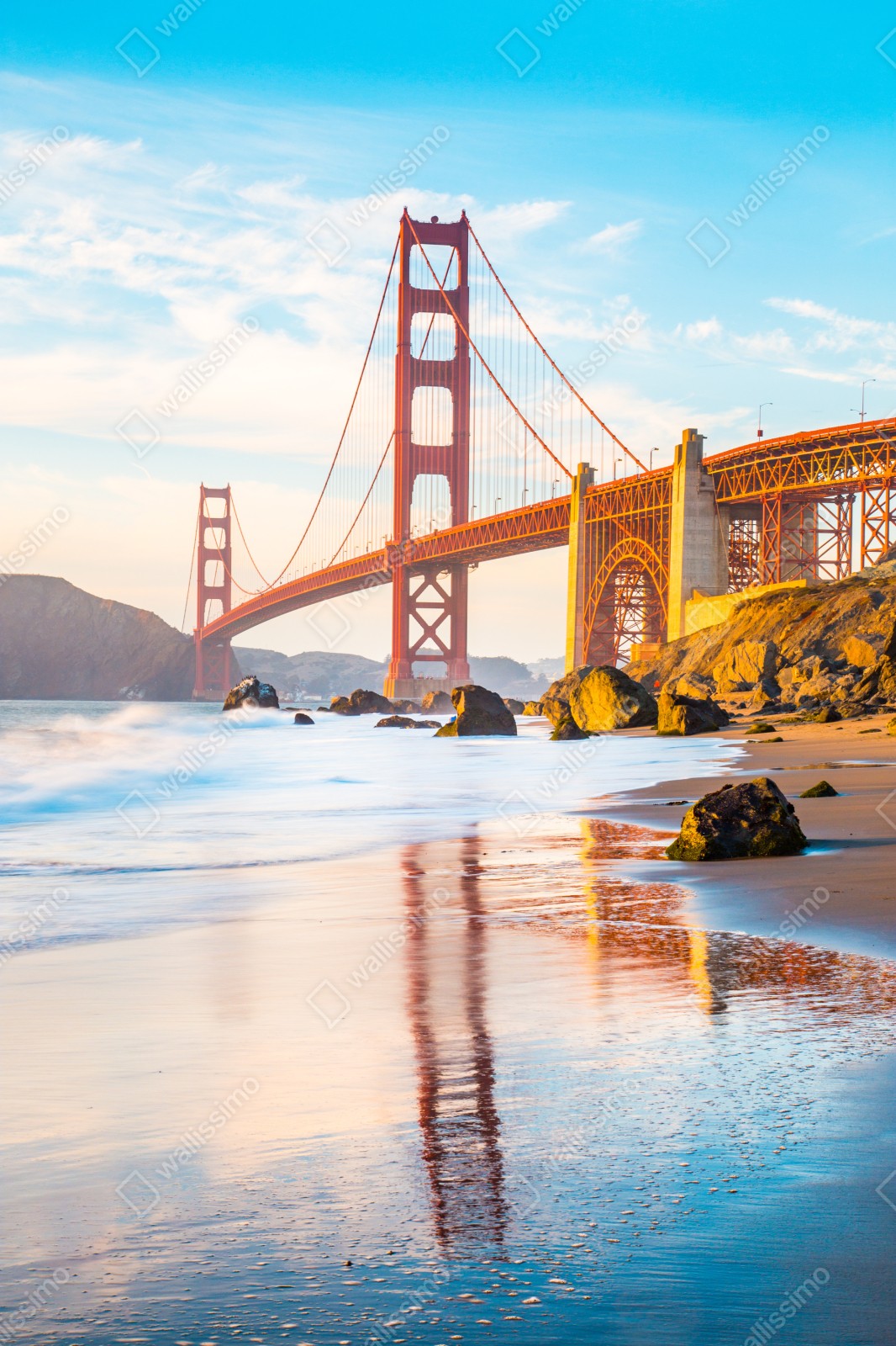 Naklejka na szafę Złota godzina przy moście Golden Gate, Baker Beach