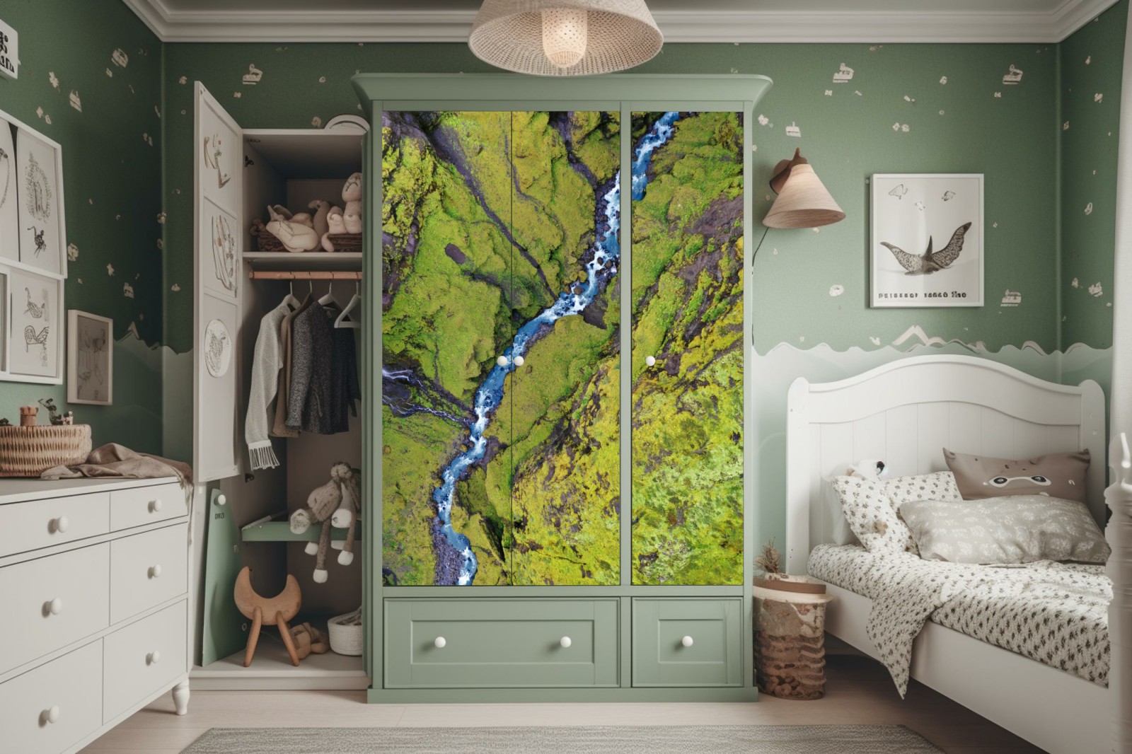 Naklejka na szafę Rzeka z lotu ptaka w mchem porośniętym wąwozie