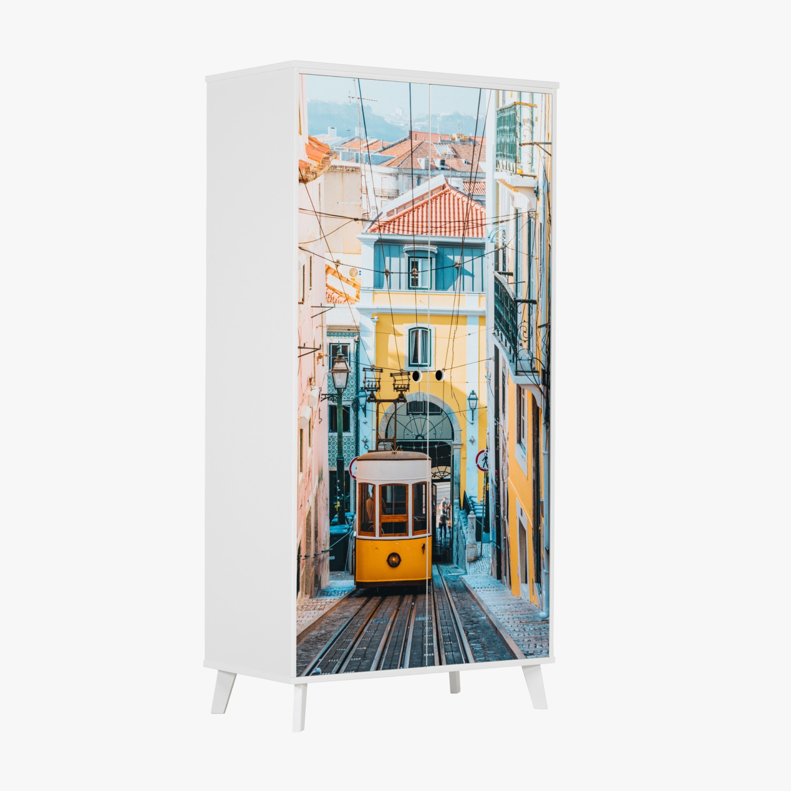Naklejka na szafę Kolorowy tramwaj bica w Lizbonie
