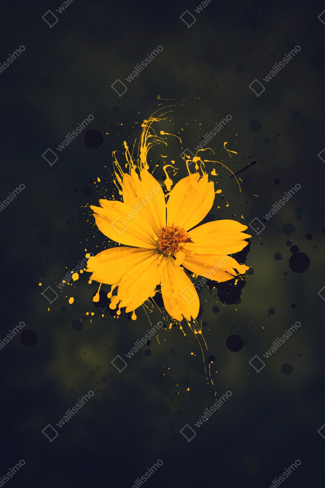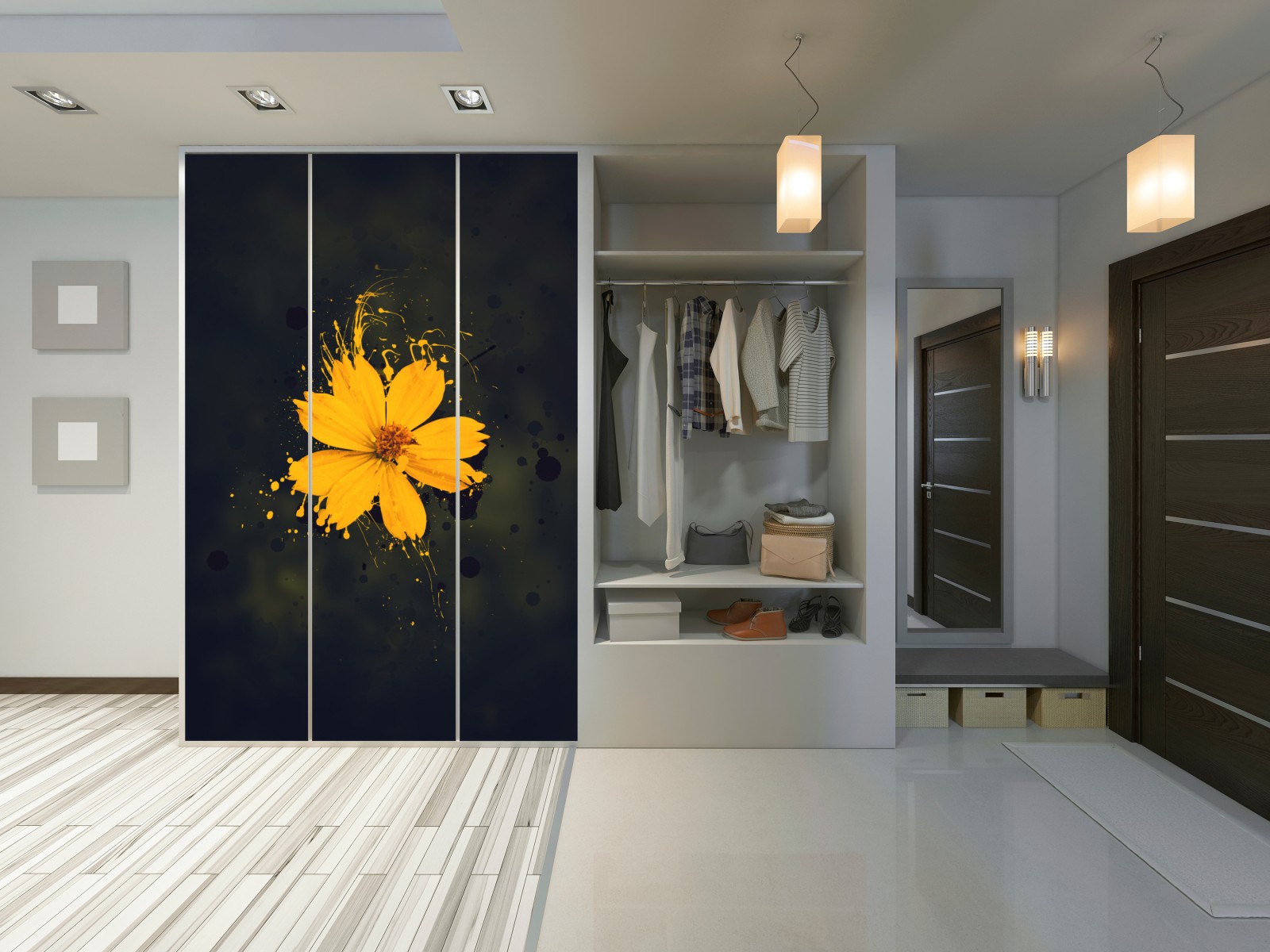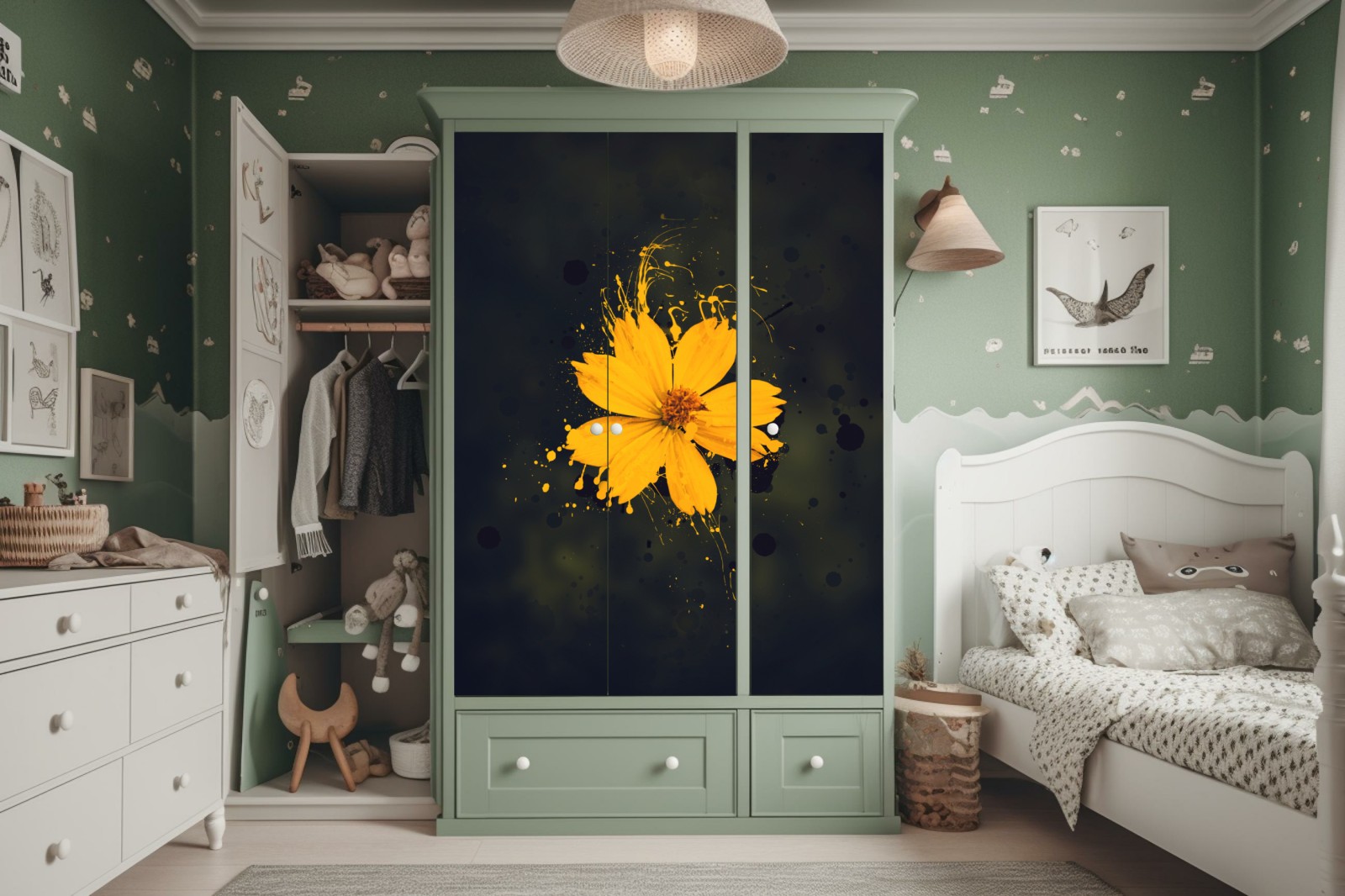 Naklejka na szafę Intensywny żółty kwiat na ciemnym tle
