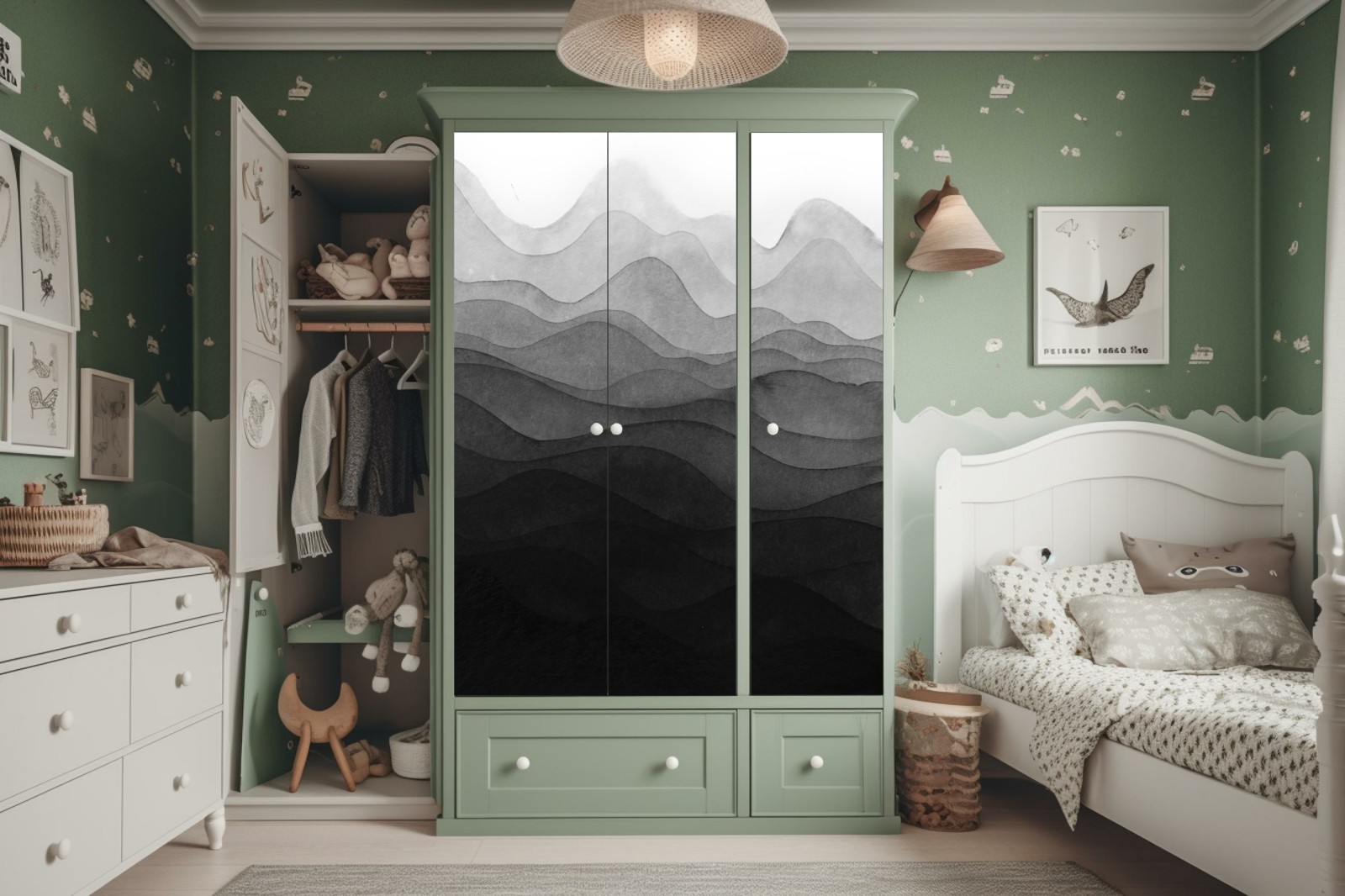 Design i funkcjonalność: Naklejki nie tylko zdobią, ale także chronią powierzchnię szafy, przedłużając jej żywotność.