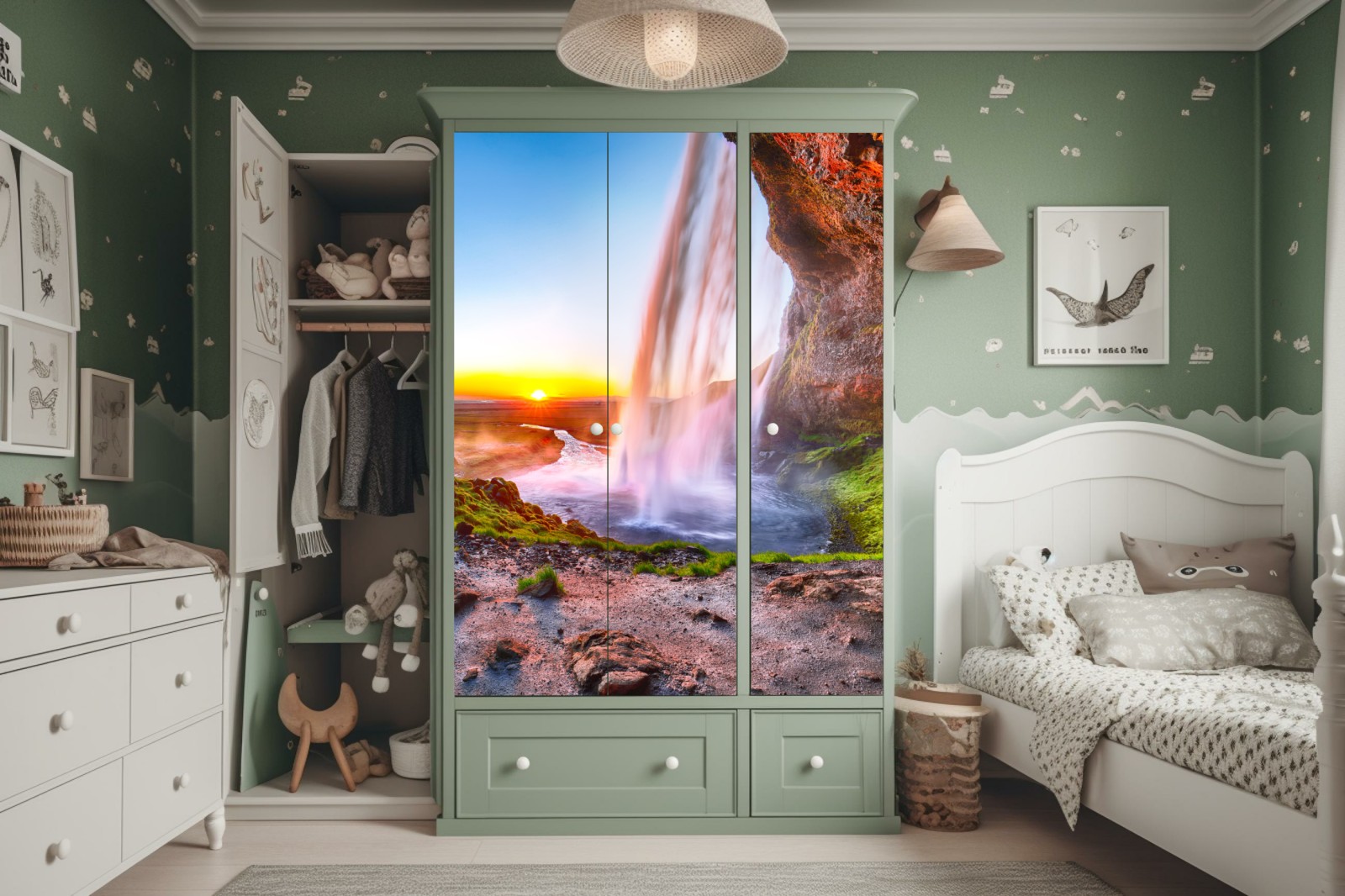 Naklejka na szafę Seljalandsfoss wodospad o zachodzie słońca