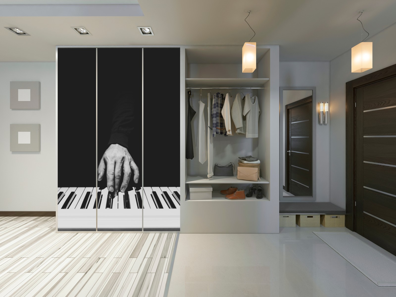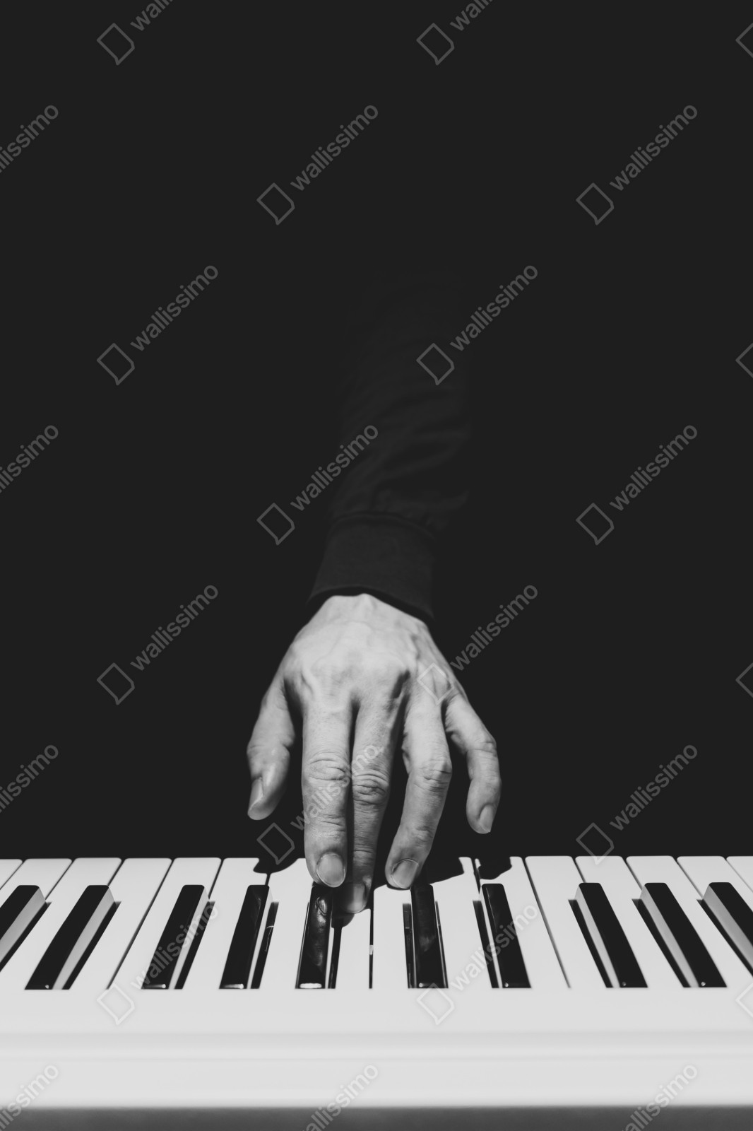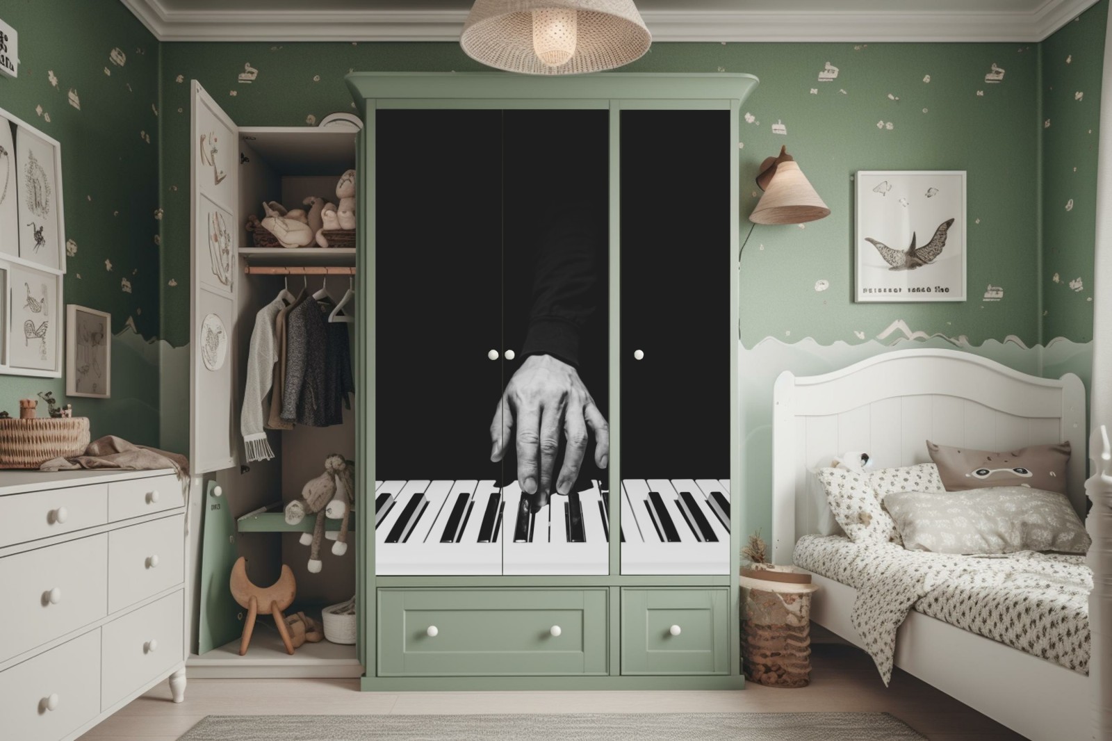 Naklejka na szafę Monochromatyczne zbliżenie ręki przy pianinie