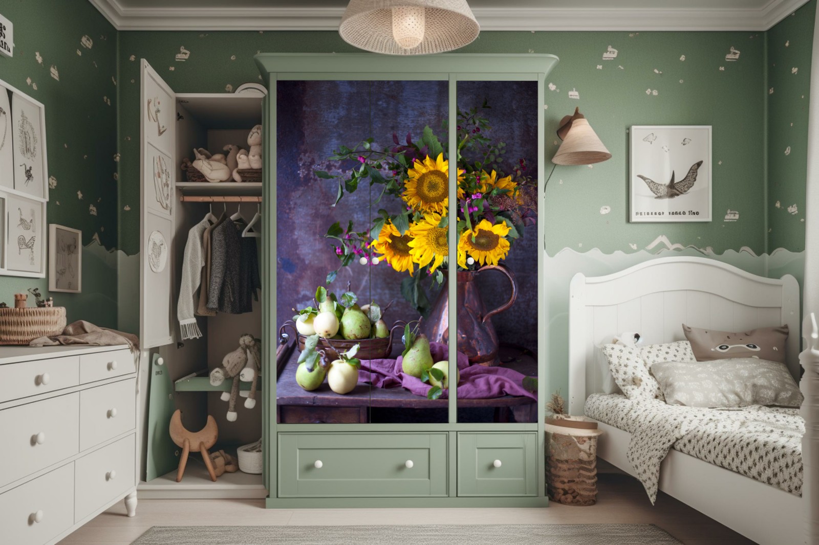 Naklejka na szafę Słoneczniki i gruszki rustykalna martwa natura