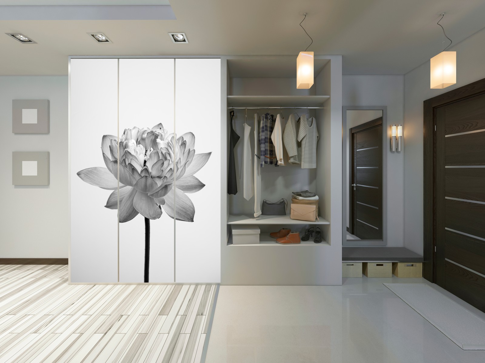 Naklejka na szafę Spokojny lotos w odcieniach szarości