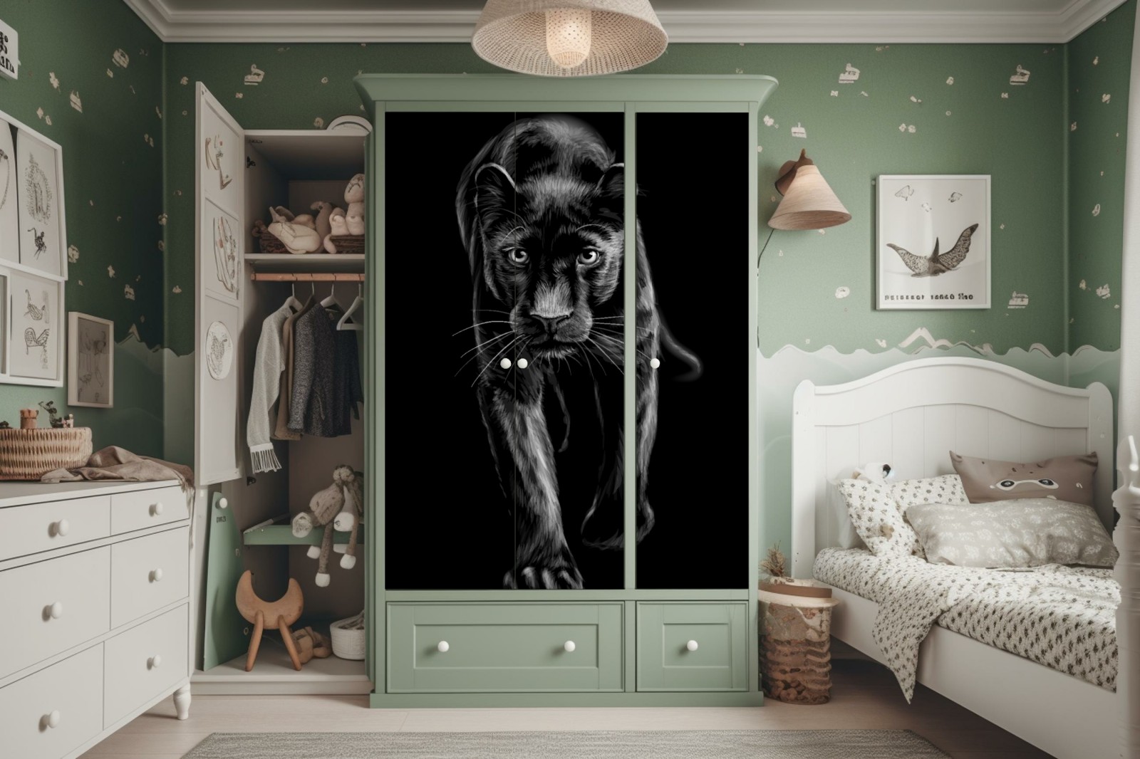 Naklejka na szafę Krocząca czarna pantera ilustracja