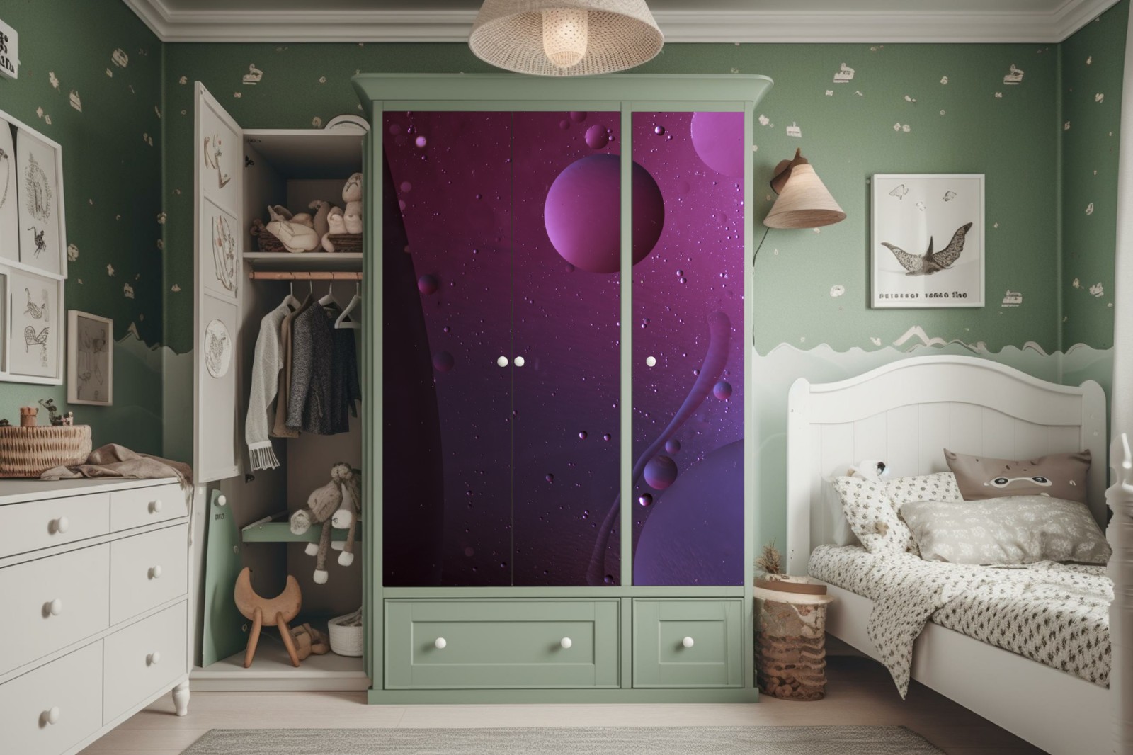 Design i funkcjonalność: Naklejki nie tylko zdobią, ale także chronią powierzchnię szafy, przedłużając jej żywotność.