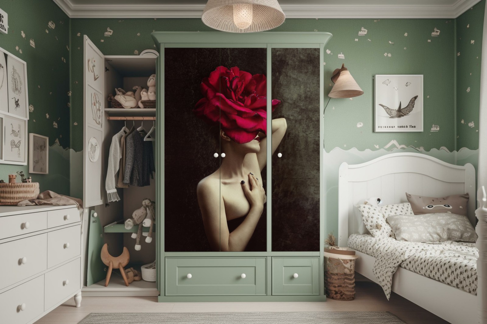 Naklejka na szafę Kobieta z głową z róży surrealistyczny portret