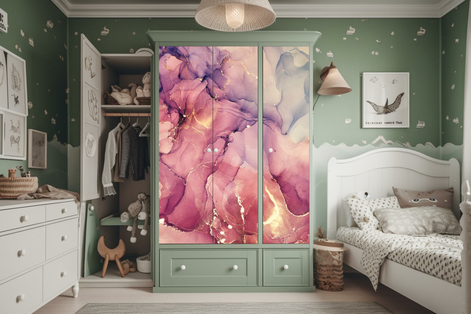 Design i funkcjonalność: Naklejki nie tylko zdobią, ale także chronią powierzchnię szafy, przedłużając jej żywotność.