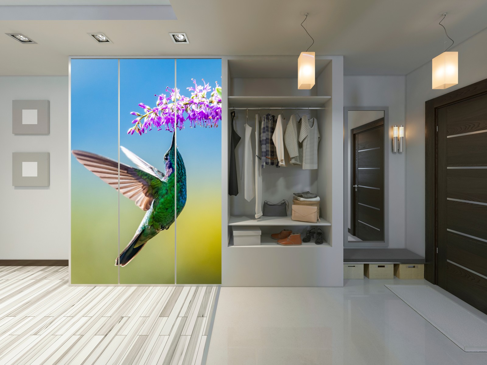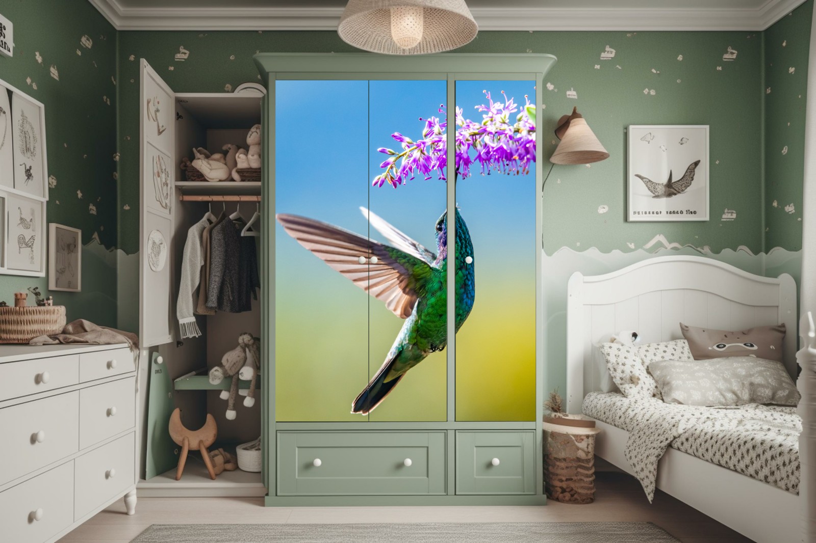 Naklejka na szafę Koliber przy fioletowym kwiecie