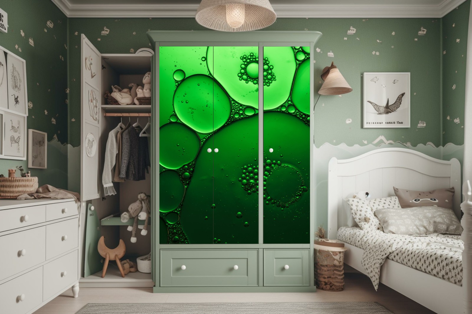 Design i funkcjonalność: Naklejki nie tylko zdobią, ale także chronią powierzchnię szafy, przedłużając jej żywotność.