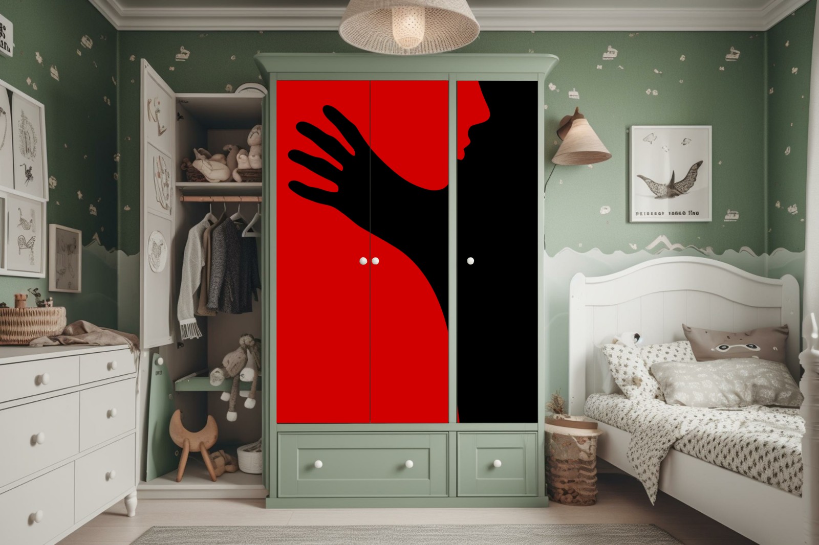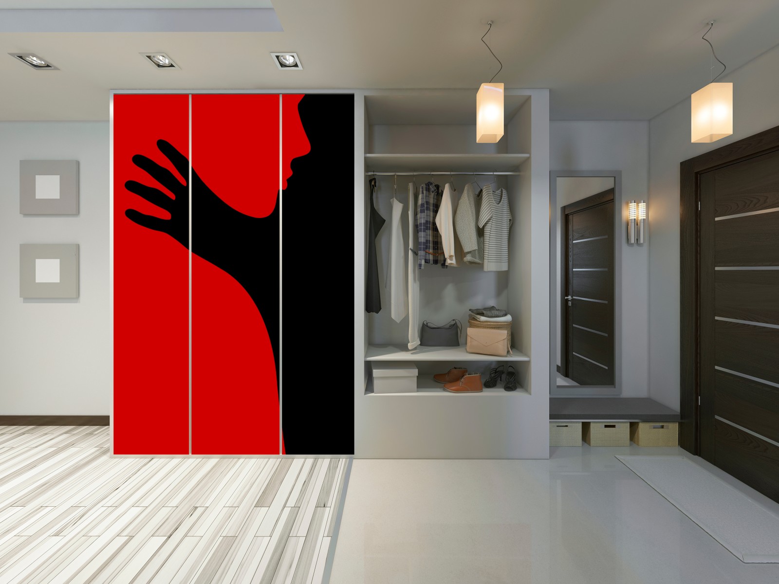 Naklejka na szafę Odważna czerwono-czarna sylwetka