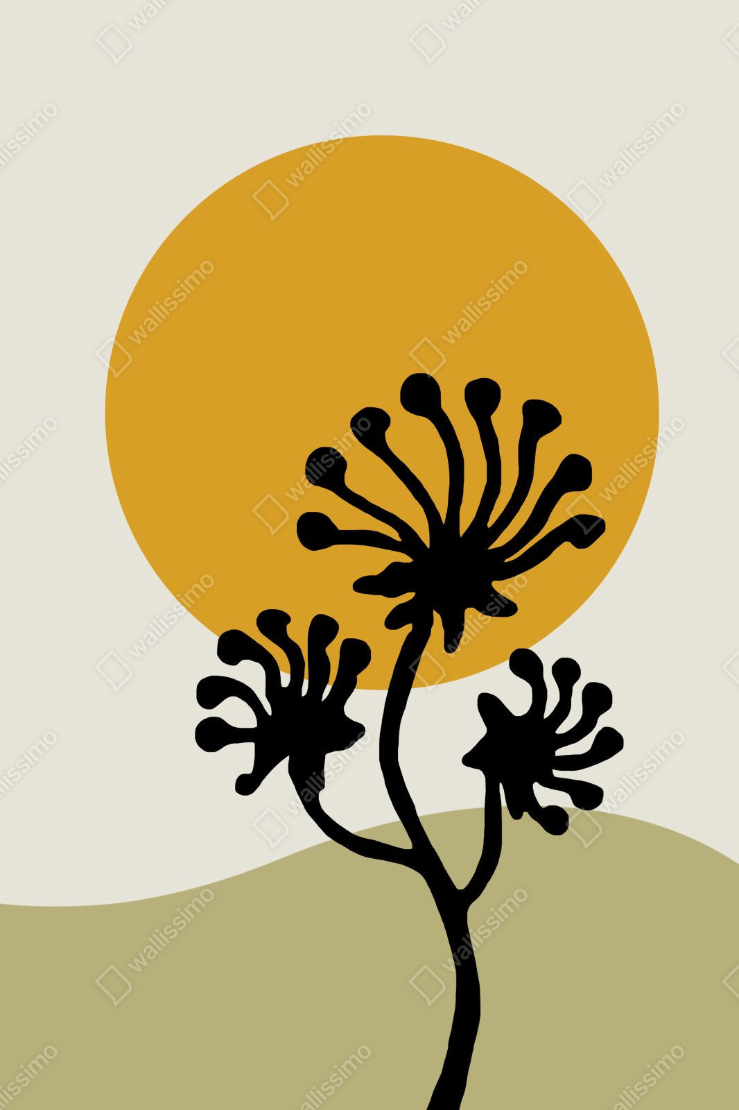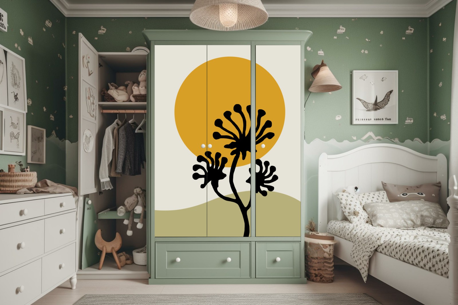 Naklejka na szafę Minimalistyczna botaniczna sylwetka ze słońcem