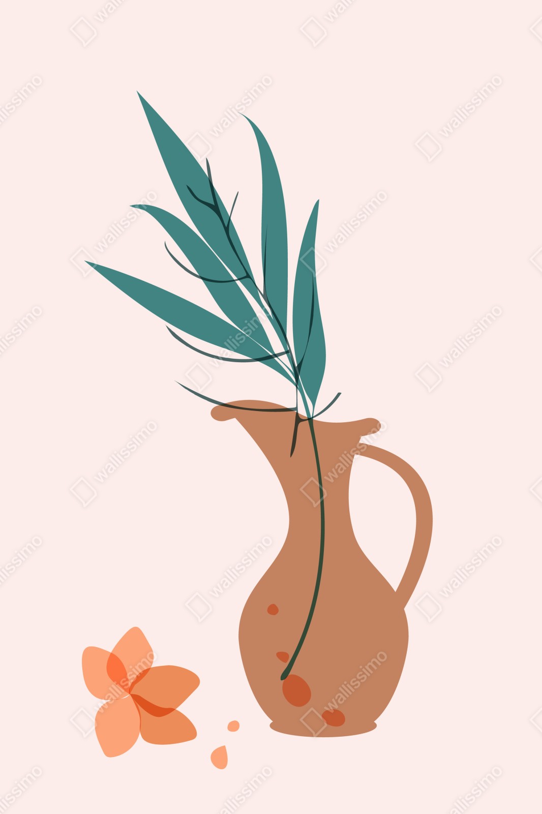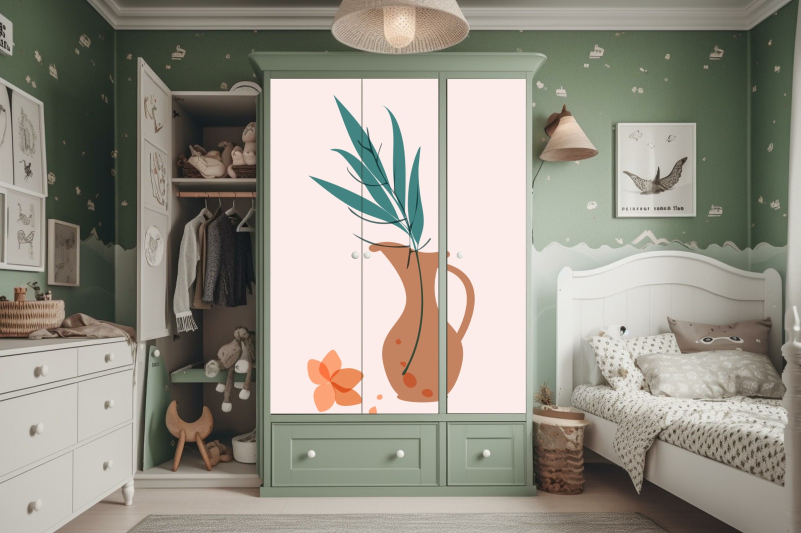 Naklejka na szafę Pastelowa botaniczna waza z liśćmi