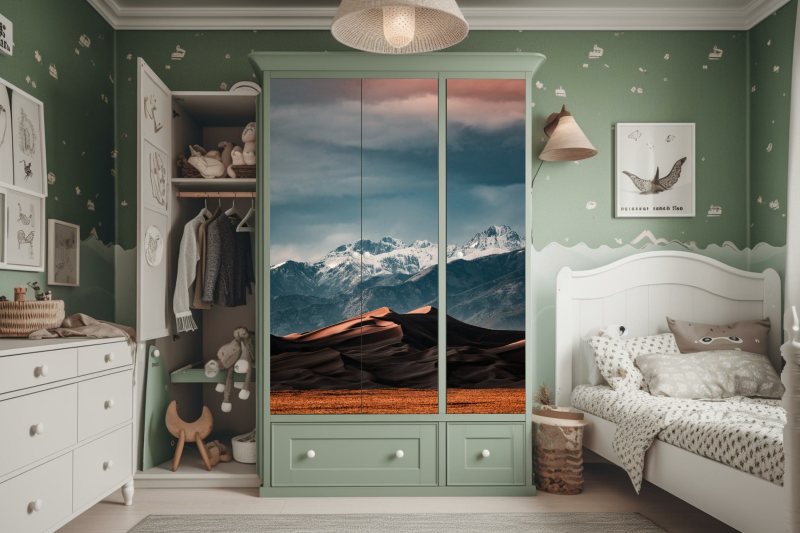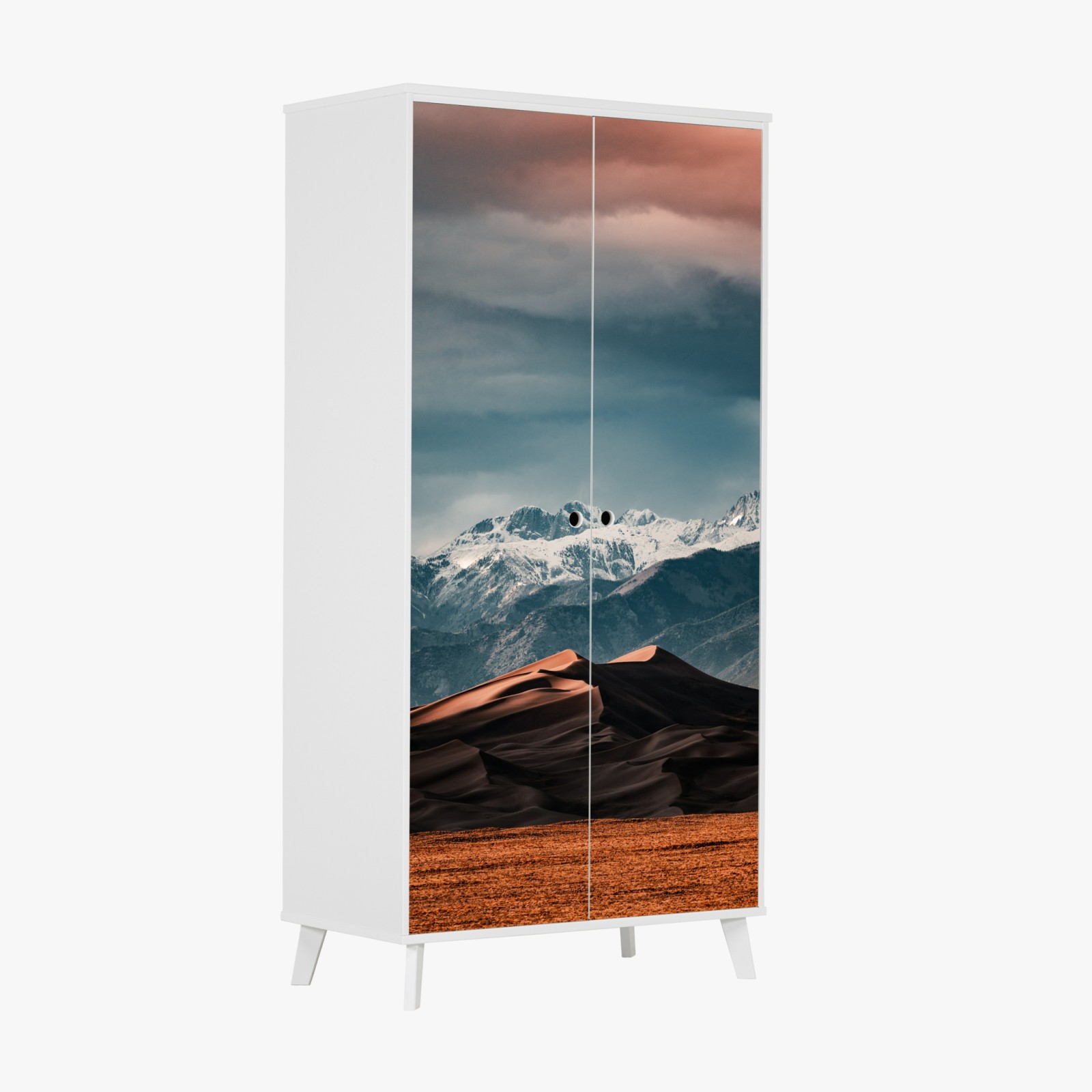 Naklejka na szafę Wydmy pustyni pod zaśnieżonymi szczytami