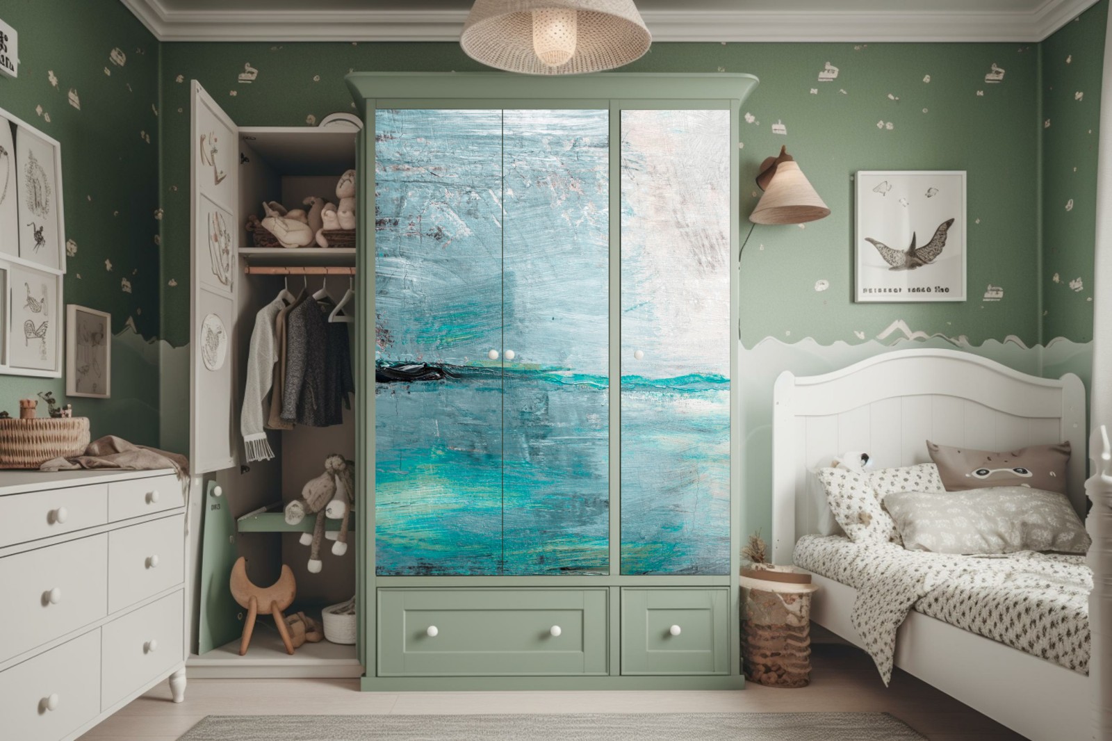 Design i funkcjonalność: Naklejki nie tylko zdobią, ale także chronią powierzchnię szafy, przedłużając jej żywotność.
